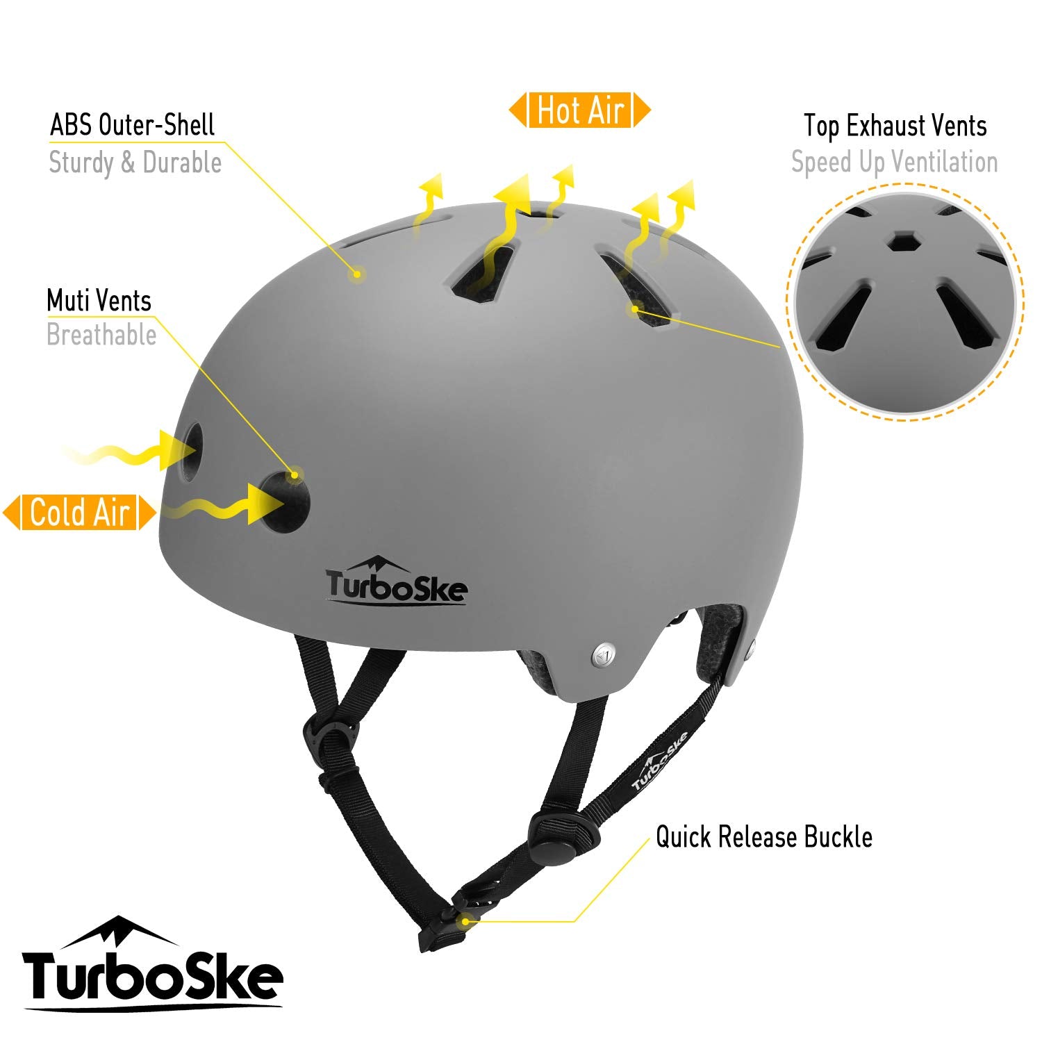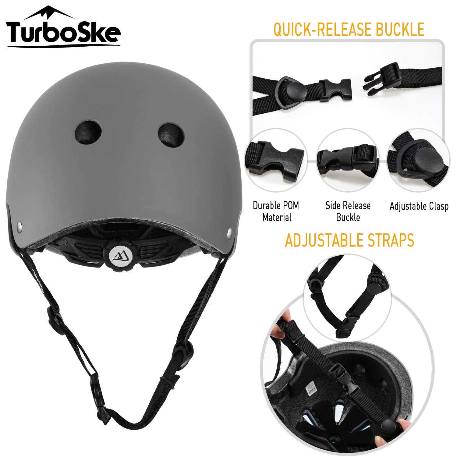 Protecting yourself from injury during skateboarding is very important and a helmet is arguably the most important part of your skateboard gear This TurboSKE helmet has a hard ABS shell and an EPS foam liner glued to the inside The hard-shell is a protective headgear that is both comfortable to wear and effective in reducing the risk of head injury Having full ventilation, without compromising head coverage, is important for the comfort of the person wearing the headgear Specs Material: ABS, EPS Safety Standard: 16 cFR part 1203 and cE Helmet Venting: 11 x Vents gender: Unisex Liner Removable & Washable: Yes Adjustable Fit: Yes Weight: 14 oz Warranty: 1 Year