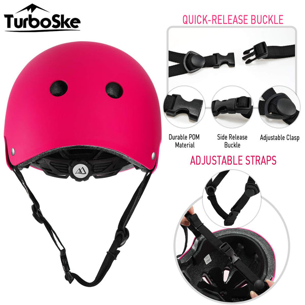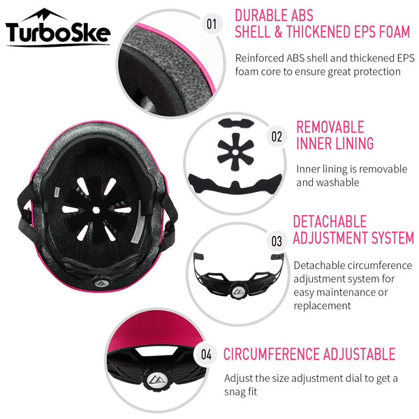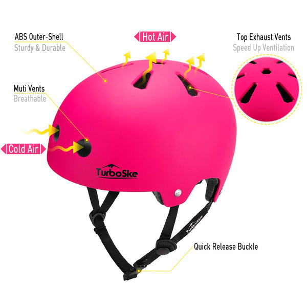 Turboske Skateboard Helmet, Bmx Helmet, Multi-Sport Helmet, Bike Helmet For Kids, Youth, Men, Women (Pink, S/M (20.5''-22.8''))
