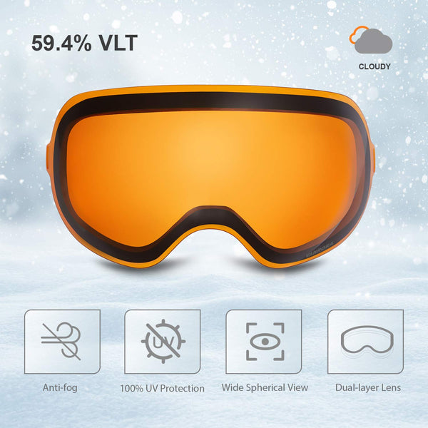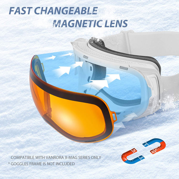 Vanrora X-Mag Ski Goggles Replacement Lens, Vlt 59.4% Orange Lens