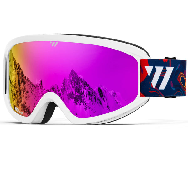 Wiston Ski Goggles - Otg Snow/Snowboard Goggles For Men, Women & Youth - 100% Uv Protection (White Frame/Fuchsia Lens)
