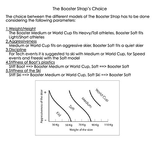 Booster Straps give you the maximum ski boot performance, extraordinary ski control and shin protecting shock-absorption Dynamic elastic straps stretch, allowing you to cinch them super tight for an increase in performance Your stock power strap does not lock you in like a Booster strap for an insanely tight closure They also provide cushioning to keep your shins from banging when you ski more aggressively Intermediate strap is (approximately) for skiers from 130-195 lbs that ski at beginner to intermediate levels