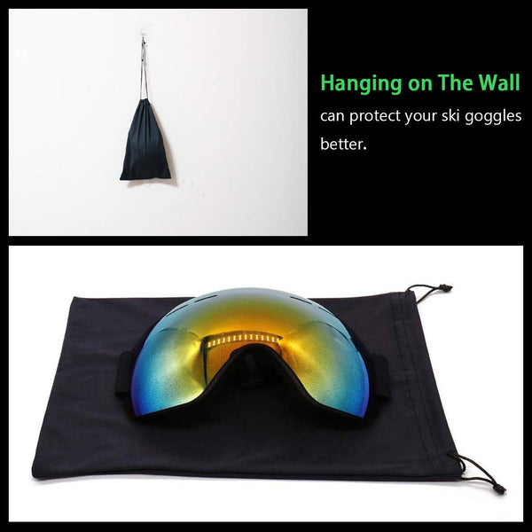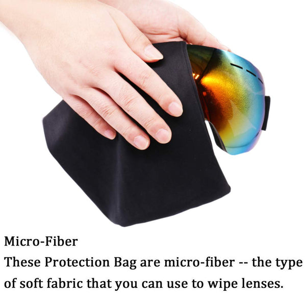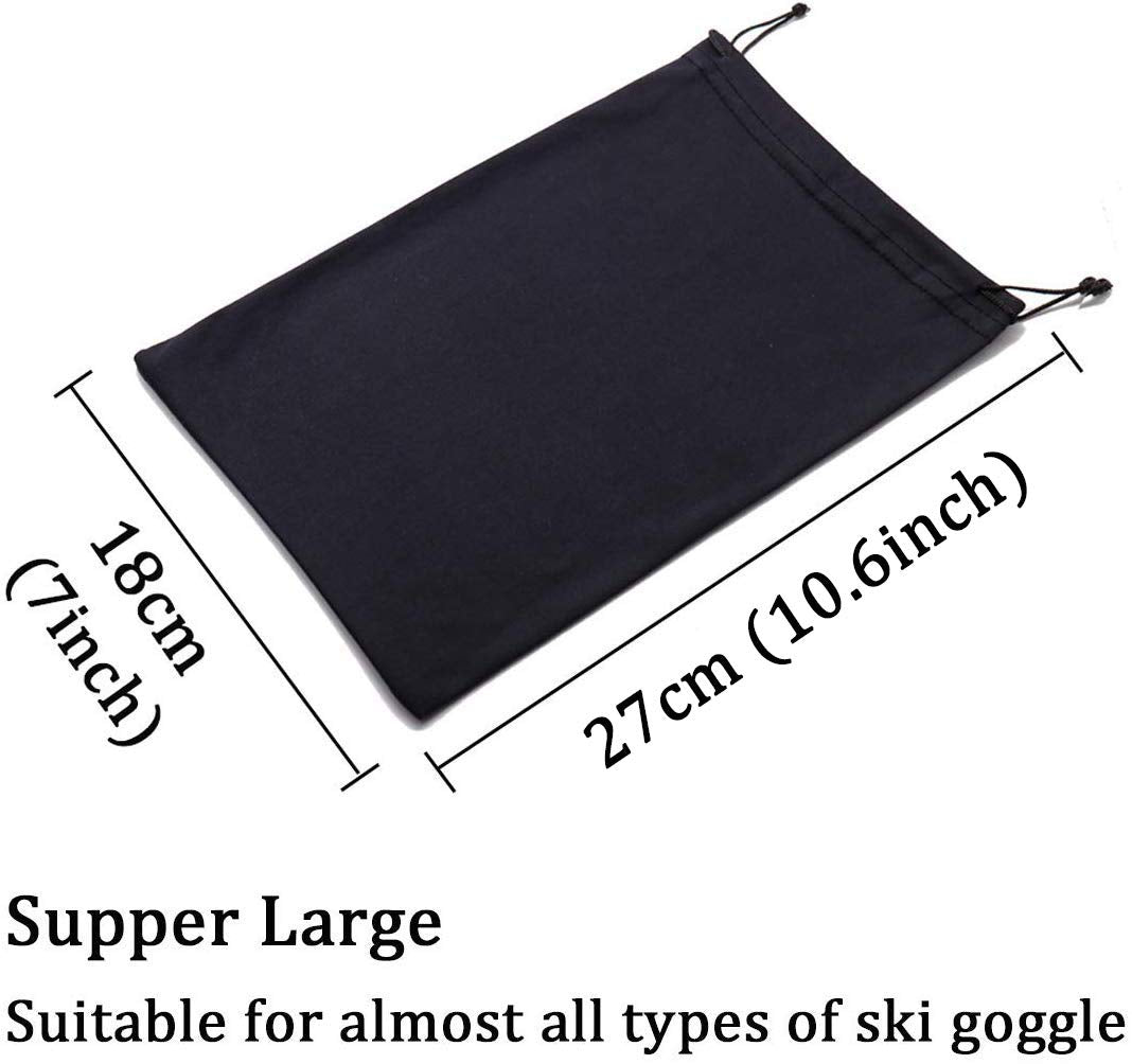 Package Include: 2pcs Ski goggle Bag, (Only Bags, No goggles) Micro-Fibe: These Protection Bag are micro-fiber -- the type of soft fabric that you can use to wipe lenses Application: Scratch-resistant, for storing ski goggles, ski mask, goggle extra lenses, camera lenses, phone charger, eyewear accessories and more Supper Large Size: Lengt 27cm 106 inch, Width 18cm 7inch Suitable for almost all types of ski goggle Portable and Durable: With adjustable draw string to tighten and loosen bag for secure protection and storage