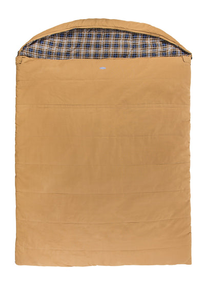 Designed to fit two people comfortably, the Kamp-Rite overnighter 2 person sleeping bag provides plenty of warmth and insulation from frigid conditions. Constructed with a durable canvas outer shell and a cotton flannel liner, the sleeping bag can handle temperatures as low as 10 degrees. The sleeping bag rolls compactly into the included carry bag for easy transport and storage.