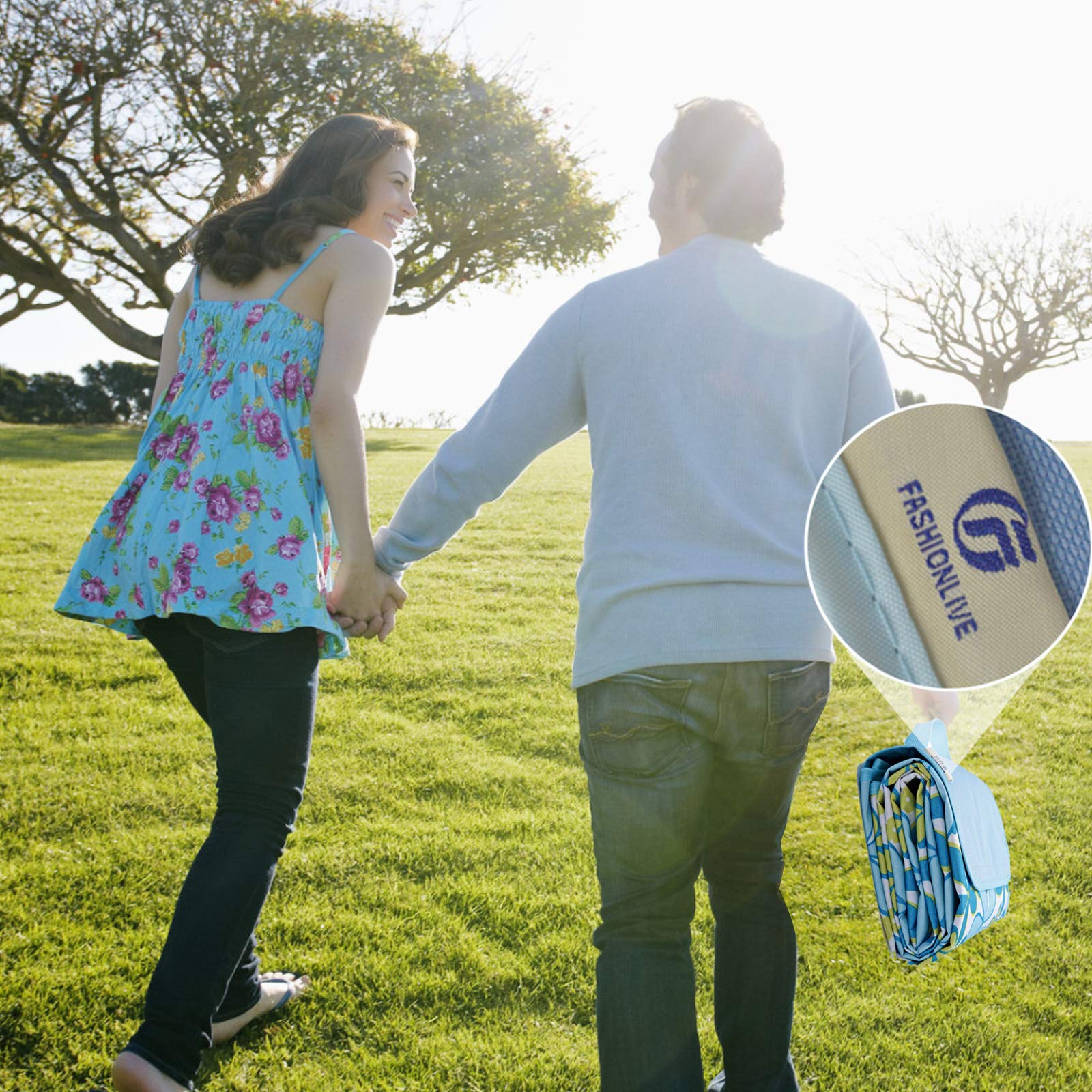 FASHIONLIVE outdoor picnic blanket can be used as a beach blanket, beach mat, camping blanket, RV blanket, emergency blanket or throw blanket. Not just outdoor blanket, it also serves as floor mat, kids playing mat as well as pet seat cover, definitely a great item for every familyExtra Large:79*57inches. Comfortable for family use.Fashion Folable Design: Support hand carry. Fold it as a handcarry tote. or can put on the backpack. easy carry to anywhere.Dual Layer for the Picnic Blanket: 600D Oxford cloth and PVC materia. The thick mat also keeps sand away. Perfect for use on sand, grass, and wet surfaces.Waterproof/Sandproof Design: keep your body from the moisture, and make the easy clean the sand, mud. keep you have a great time when on outdoor, picnic, beach.Multi Usage: It is a good mat for outside picnic, camping, Hiking, Beach, park, home garden, grass land and other place.Storage: Easy to fold to put on your drawer, store room, car back, or any other place.please keep the blanket dry before storageWashing instructions:Top Layer: if it was just stained by drink, pls use the tissues to absorb the liquid till the surface become dry. If the cloth was stained by other stubborn stains, pls wipe the surface back and forth by one hand slightly with warm water and mild soap, and then line dry in the air.Bottom waterproof layer: just wipe clean with damp cloth.Warm Note: As the picnic mat was new made, every pack was a little smell, please remove the package , open the blanket, put on your backyard or store room. after 1-2 times use, the smell will gone. Package Include:1 X 79 Inch *57 Inch Picnic Mat