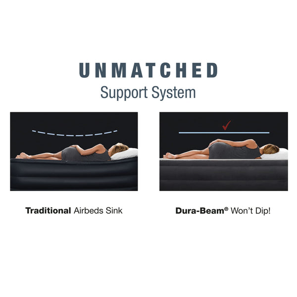 Enjoy a good night's sleep wherever you are with the Intex Supreme Air Flow Air Mattress Bed. This airbed is especially useful when it comes to traveling or camping. This comfy portable bed features a built-in electronic pump that easily inflates and deflates your bed for a super convenient setup and takedown process. When it comes to air mattresses, you don't need to compromise your comfort. Therefore, the Velvetaire soft surface helps make for a rested goodnight's sleep. Plus, Air-Flow technology evenly distributes the air smoothly throughout the surface using interconnected air pockets; making for an extremely all-around comfortable experience. Constructed with enhanced high-strength Fiber-Tech technology, this twin bed displays the utmost durability for long-lasting use. When you're done using the air mattress, simply fold it up and store it in the included carrying case and enjoy hassle-free portability when headed to your next adventure. Whether it's a night under the stars or you just need an extra bed for a friend, the Intex Supreme Air-Flow will give you comfort and peace of mind for a good night's rest.
