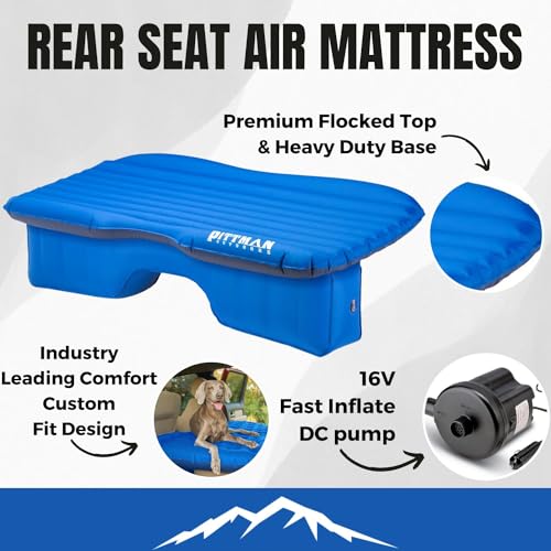 The Inflatable Rear Seat Air Mattress is perfect for mid size Cars, Trucks, Jeeps & SUV's. The air mattress is made of soft, heavy duty 300D fabric and includes a DC portable air pump for your convenience. No need to rent an expensive hotel room anymore. Take car rides to the next level of comfort with this Inflatable Travel Mattress. The mattress easily fits into the back seat of most cars. Transform your truck's back seat into a cozy bed with this 60'' wide inflatable mattress, perfect for full-size pickup trucks, vans, and large SUVs. Includes a pump for easy inflation and a storage bag for convenient portability.