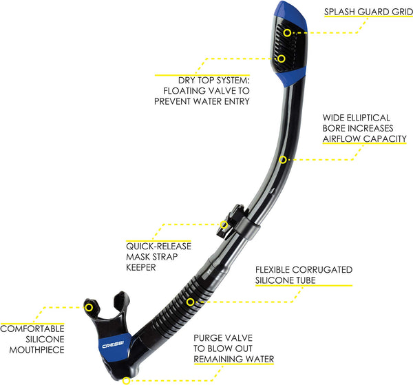 The F-Dual & Supernova Dry combines 2 quality products for great snorkeling. The F-Dual is a single-lens frameless mask. The Supernova Dry snorkel has a floating mechanism that closes instantly to prevent water from entering the snorkel when submerged.