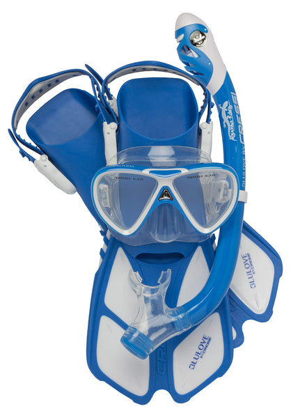 The Mini Bonete set is lightweight, inexpensive, and ideal for young snorkelers eager to discover the underwater world. The mask, snorkel, and fins are made with soft and hypoallergenic silicone to ensure comfort and ease of use. The mask features tempered glass lenses and side buckles to easily adjust strap length. The snorkel includes a keeper that can be clipped onto the mask strap. Equipped with a dry-top valve, the snorkel seals the breathing tube when submerged, preventing water from entering the airway. The Bonete fins are short open heel fins with adjustable straps. With their lightweight design and soft foot pockets, these fins ensure relaxed and comfortable finning. The Mini Bonete set is designed by Cressi and made in China. Cressi has been an Italian brand pioneer in Scuba Diving, Snorkeling and Swimming equipment.