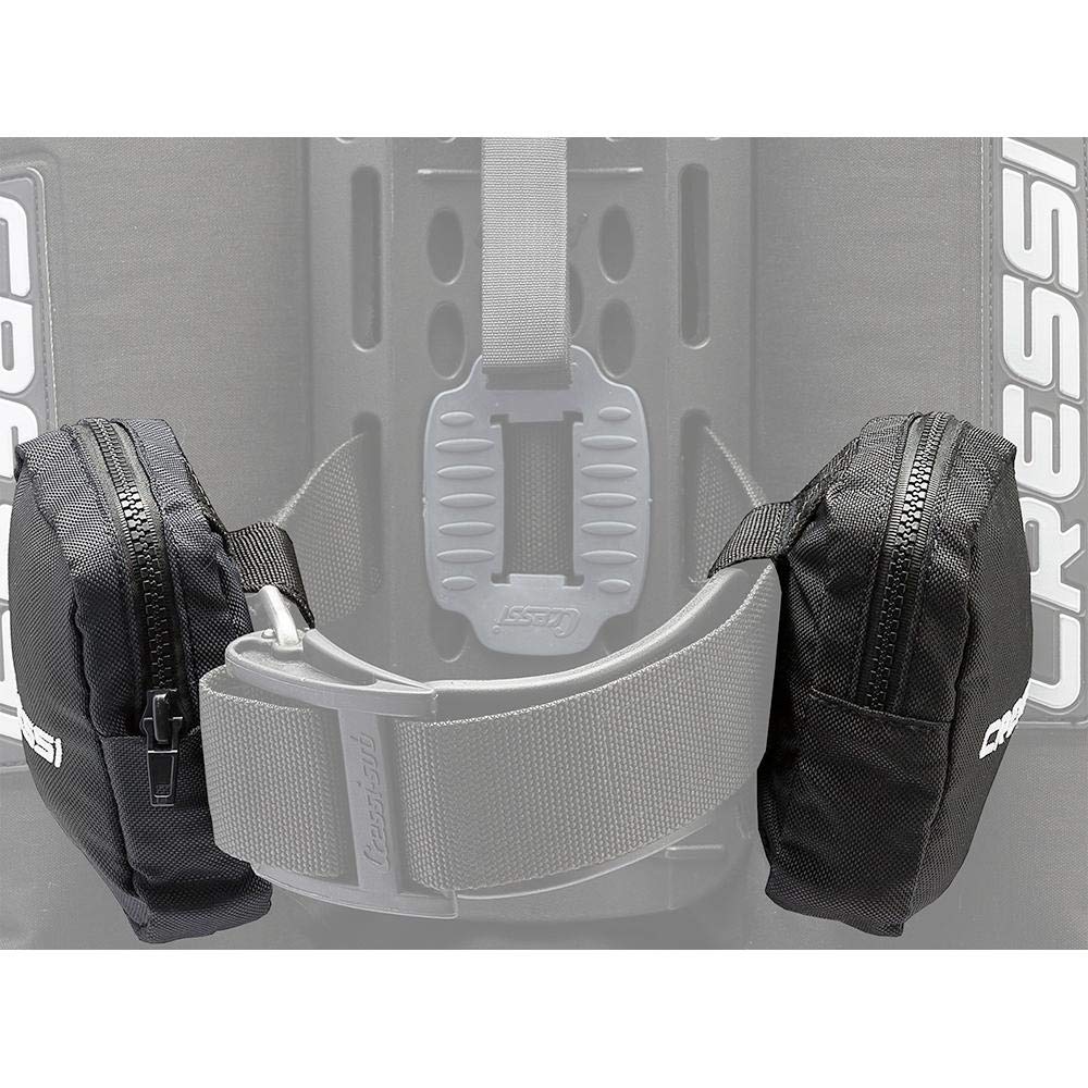 Adding Weight Pocket(s)to the BCD cylinder cam band can prevent excess cylinder buoyancy. By placing hard or soft leads in the weight pocket situated on your cylinder, the cam band will keep the cylinder from floating towards the end of a dive and can provide balance to the system for a more comfortable dive. It will also take some weight off the hips when diving with a weight belt. Pockets are made from durable nylon material with a zippered closure for security of weight. The Tank Strap Weight Pocker is designed in Italy by Cressi and made in China. Cressi has been an Italian brand pioneer in scuba diving, snorkeling, and swimming equipment since 1946.