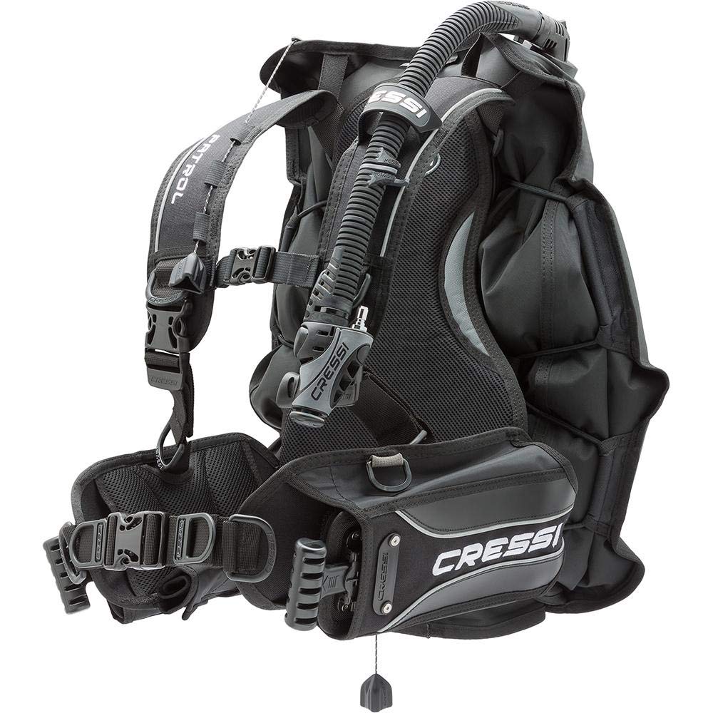 The Patrol is a dorsal volume BCD, very versatile for all types of diving, with a robust but lightweight construction at the same time and with a low volume of transport but strong and very flexible. The harness system which is completely independent of the air bladder, provides absolute stability of the jacket on the diver and releases all oppression of the chest, axillary and abdominal area, completely, due to the expansion of the bladder to the outside of the dorsal area and surrounding the tank. The design and arrangement of harnesses make it unisex. High-lift capacity dorsal air bladder but with an external volume of stowage always contained, thanks to the elastic containment tensioners that have as an additional mission to facilitate the deflation and avoid displacement of the air during the dive that would cause instability. Patrols backpack is very light and semi-flexible to fulfill its function without adding weight or volume to it. Completely covered with comfortable neutral buoyancy padding, made of a closed-cell material that avoids the accumulation of water or air and, therefore, reduces the inherent buoyancy in the jacket and facilitates quick drying. Unlike many BCD considered as ''travel jackets'', the stability of the tank underwater is not compromised thanks to the configuration of the air chamber that acts as a guide for the tank. The weight system LAS (Lock Aid System) 2.0, is now more integrated in the profile of the BCD and its thickness is reduced. This system, following the Cressi tradition, guarantees the maximum facility of insertion and releasing of the weight with total safety against accidental losses since its anchors incorporate a spring effect (patented) in anticipation of accidental hooks. Its use is highly ergonomic and intuitive even without looking. Direct System Inflator: Double metal filter in the air entrance under the stem and cylindrical shape around the valve. Very strong body and attractive design. Inflation rate recalibrated, 50% higher (traditional BCD of size M in 4 seconds at 1 ATM). Anti-sand design with minimized mouth inflator nozzle. Push-button with wide clearances with respect to its seat to avoid the blocking action of the sand grains. Vacuum button with sealing using a silicone washer. Push-button integrated into the profile to avoid unwanted inflation when pulling the hose to empty. New very resistant hose of very progressive curvature. Guide clamp-integrated hose. New low profile upper vacuum valve with a non-return valve that prevents the accidental entrance of water. New flap for fixing the hose made of thermo-rubber with embossed logo. 4 D-rings made of ABS. ''Y'' hose holder. Combination of 420D Nylon + 3 other fabrics. Roll-up side pocket. The Cressi Patrol is manufactured in Hungary by Cressi. Cressi is an Italian brand pioneer in scuba diving, snorkeling, and swimming equipment since 1946. The product is covered by a 2-year limited warranty.