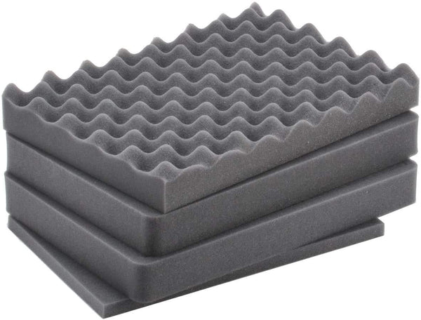 - Q: What are the dimensions of the foam pieces? A: The convoluted lid foam measures approximately 18.06" x 12.89" x 1.75", the two middle pluck pieces are about 18.06" x 12.89" x 2.00", and the bottom pad is approximately 18.06" x 12.89" x 0.50".