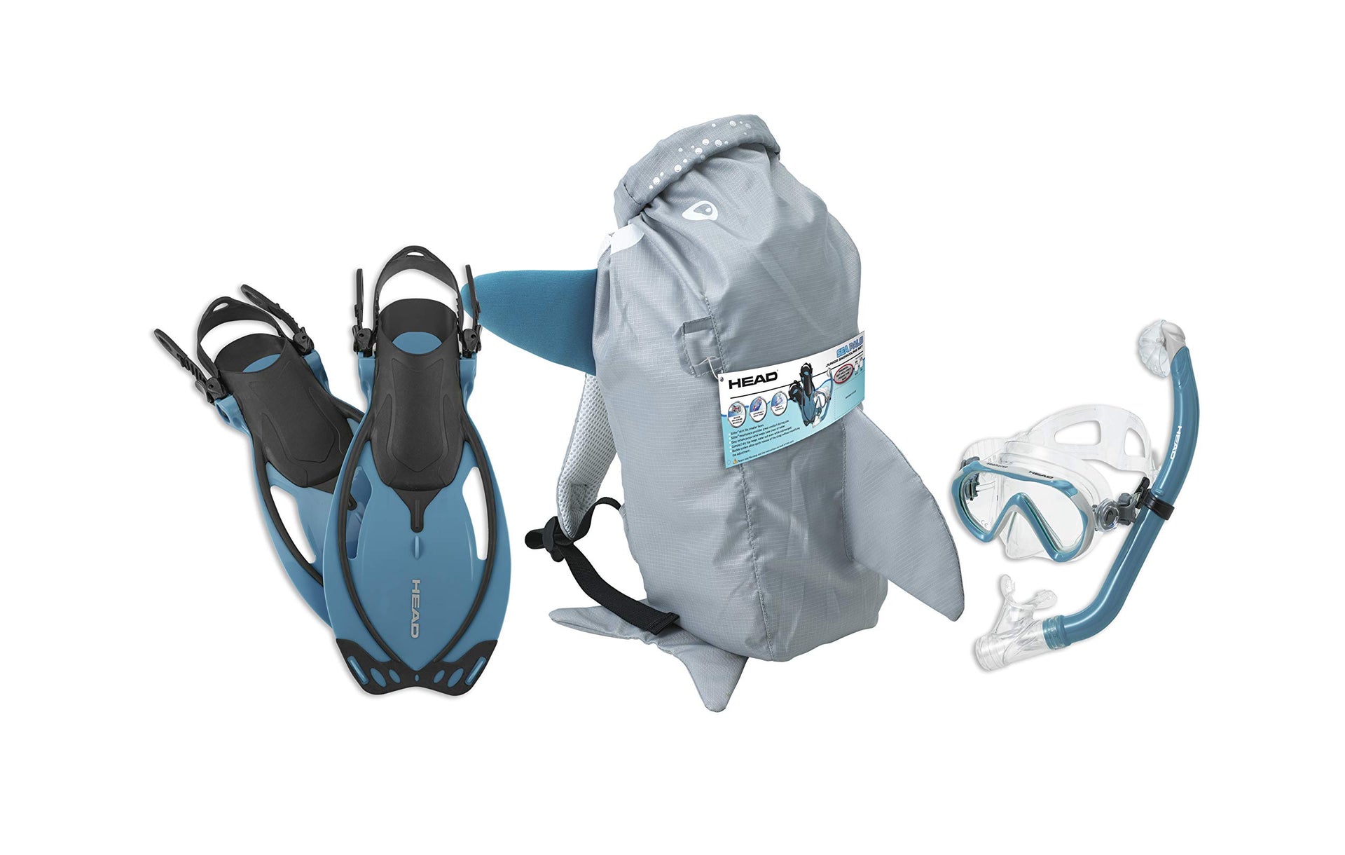 Head Mares Sea Pals Character Kids Mask Fin Snorkel Set, Aqua, Large/1-4