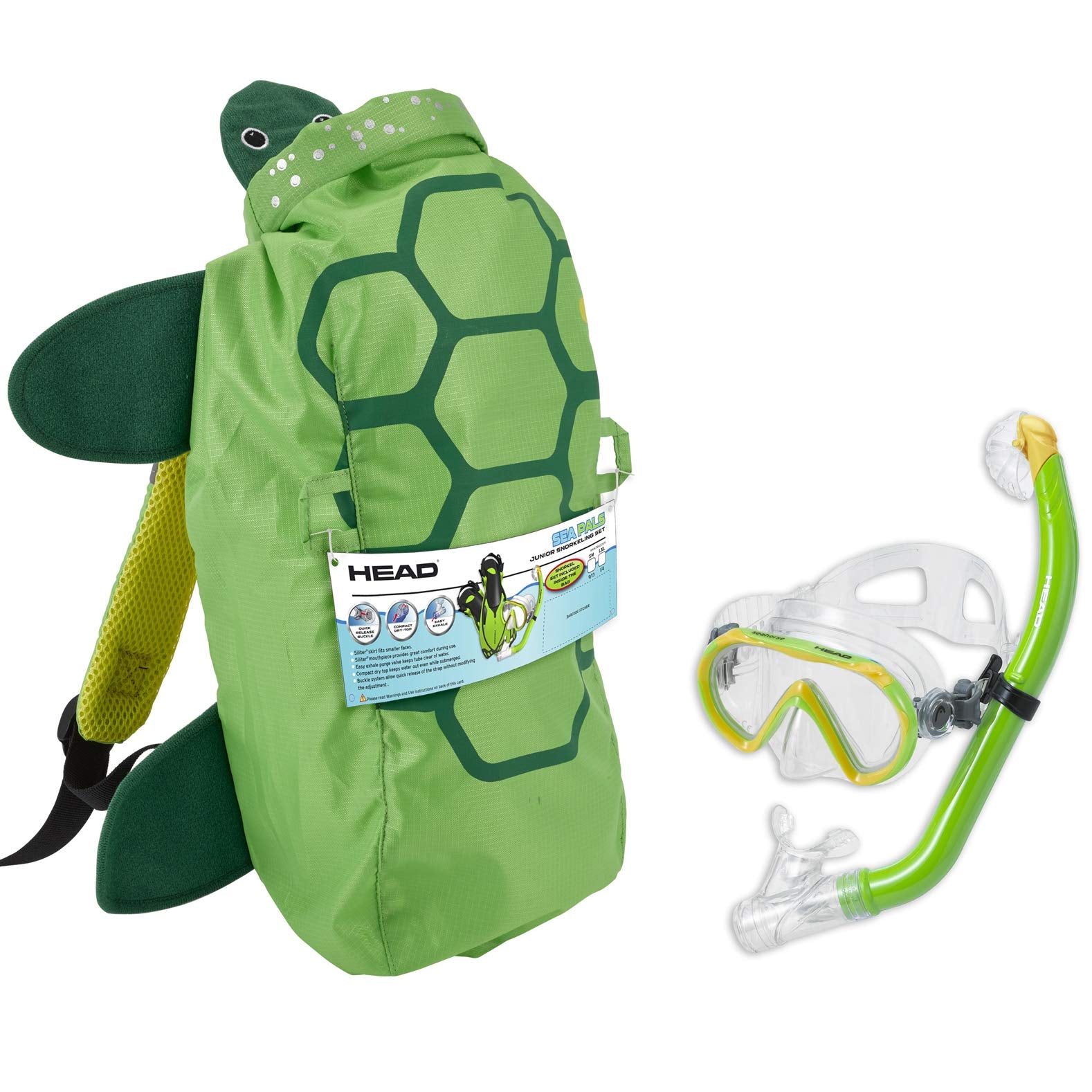 - Q: Is there a carry bag included with the snorkeling kit? A: Yes, the Head Sea Pals Junior snorkeling kit comes with a fun-looking carry bag that allows children to easily transport their mask and snorkel.