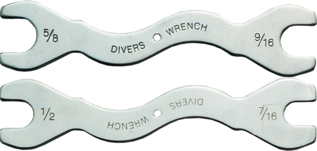 Stainless Steel Scuba Wrench Set Curved handles and 4 of the most commonly requested wrench sizes for scuba air hose attachment and general equipment maintenance. sizes include 1/2, 9/16, 5/8, and 11/16.''