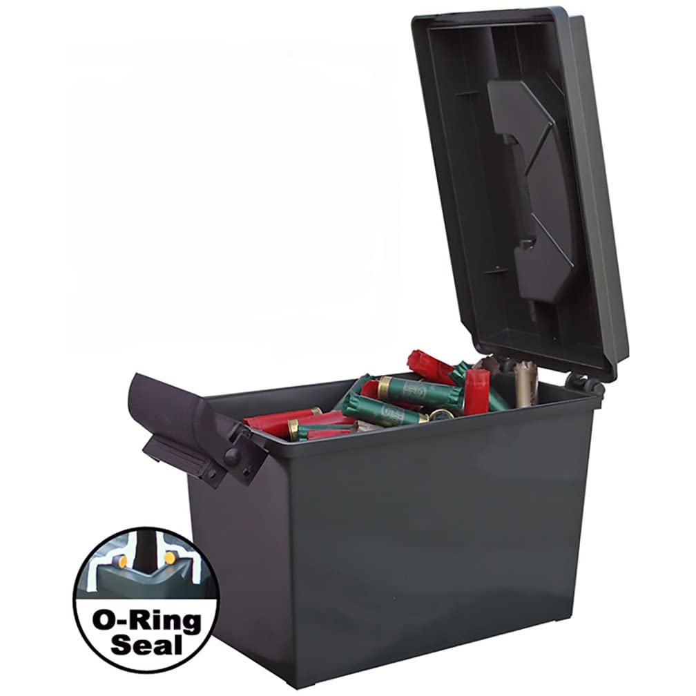 MTM's Sportsmen's Dry Box is rugged and indispensable for many outdoor needs. Your items will be safe and dry with features that include: Water resistant, Crush-proof, O-ring seal, Rugged tongue and groove construction, Large comfortable handle, Heavy duty latch, Thick side wall construction and Lockable. Makes an ideal geocaching container due to its color, O-ring seal, and rugged construction.