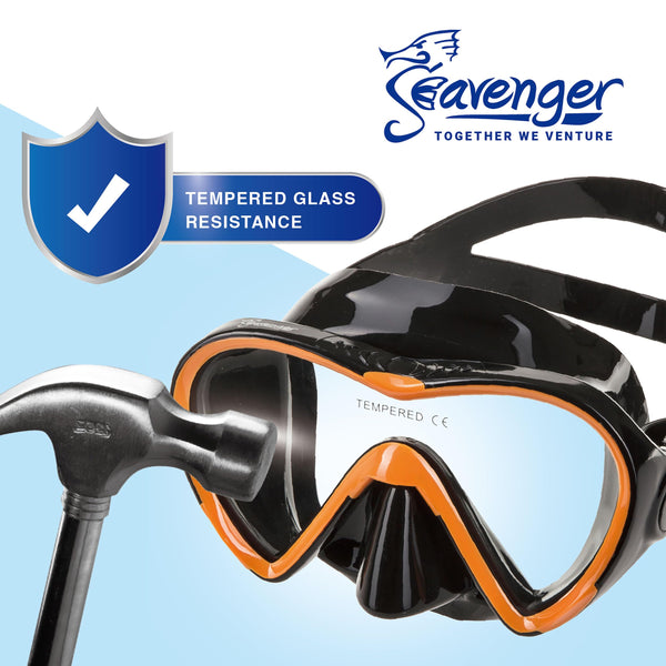 Seavenger Diving Dry Top Snorkel Set With Trek Fin, Single Lens Mask And Gear Bag, L/Xl - Size 9 To 13, Gray/Clear Blue