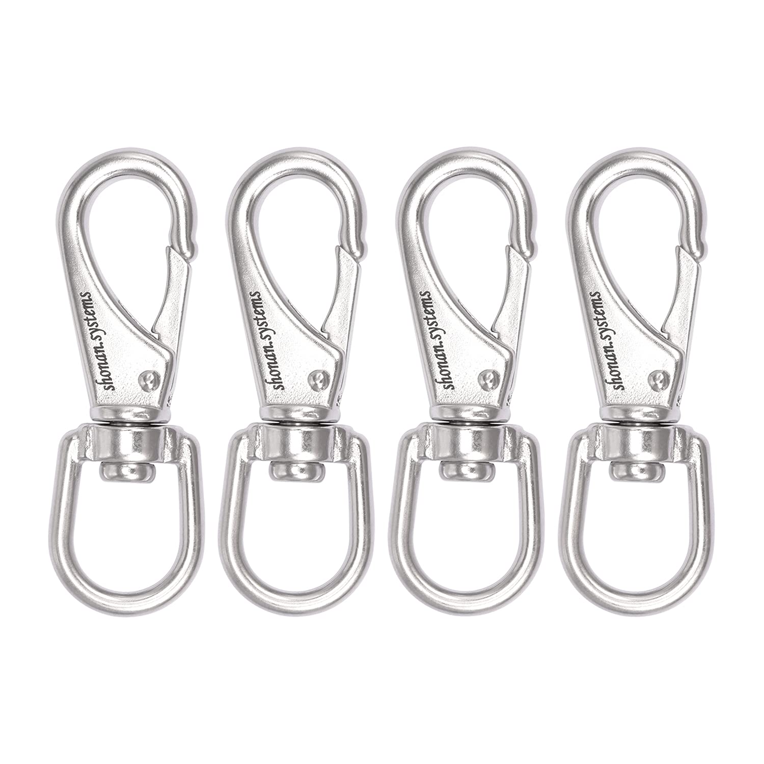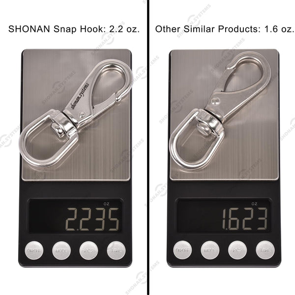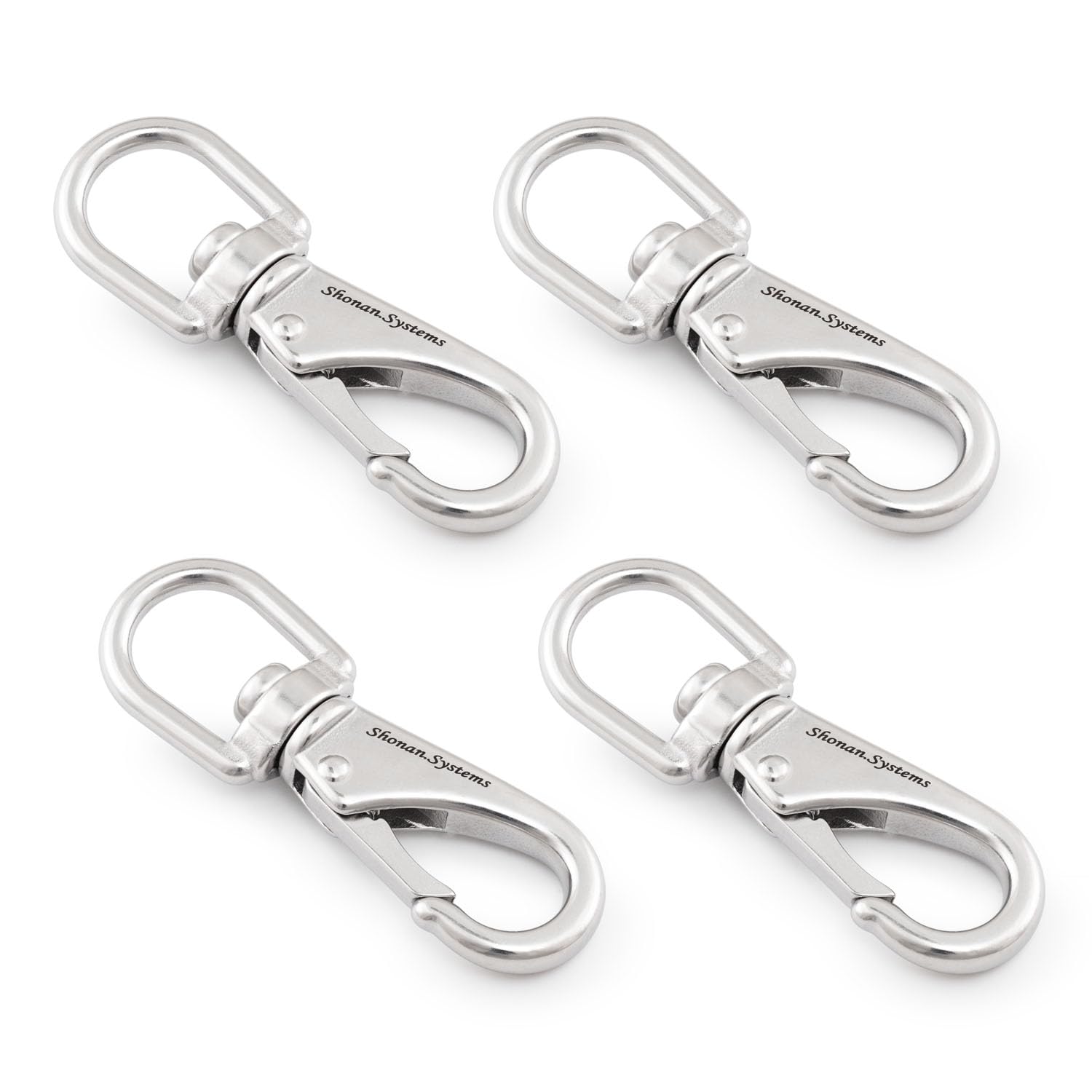The structure of SHONAN swivel hooks is reasonable with 360-degree rotation for an easy clip a rigid oval eye ensures its stability and strength The swivel-eye snaps here can be easily operated with one hand