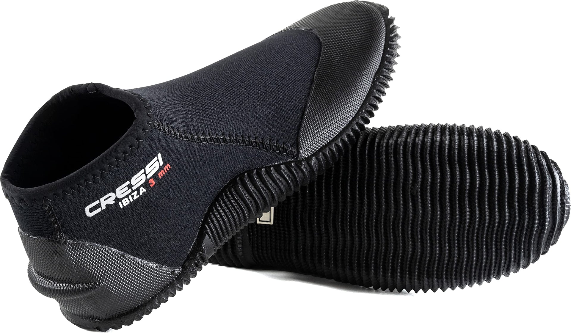 The Ibiza 3mm are lightweight boots ideal for outdoor sports and travel Made with Super Elastic Neoprene for best comfort within the sole, it is built to provide extra comfort, and is also ultra durable The back of the heel has a special design that fits perfectly with open heel fins for scuba diving The small boss is used to prevent the slipping of the fins strap A strong non-slip molding covers the entire sole They are suitable for surfing, kayaking, scuba diving and different kind of water sports Rinse with clean water after use a let dry The Ibiza boots are designed by cressi and made in china cressi is a brand pioneer in Scuba Diving, Snorkeling and Swimming equipment