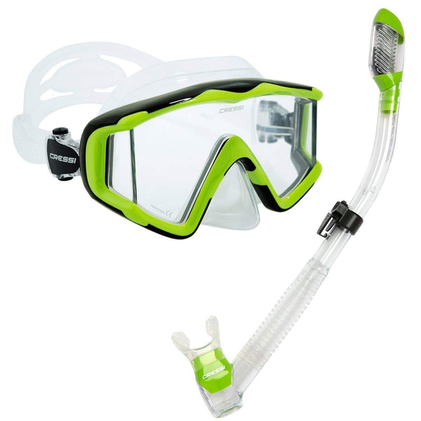 change your field of view A comfortable mask for the pro, the semi-pro, and all lovers of the sport who want to see the underwater world more clearly The cressi panoramic masks have been designed to give you great visibility, fit, durability, and comfort Youll get a clear look at whats going on in any dive environment and our eye-catching translucent colors will let you outshine the brightest fish The masks are made of hypoallergenic soft silicone to ensure a perfect sealing Soft nose pocket for easy equalization The lenses are made in tempered glass for safety and easy-to-clean Push-button buckles to easily adjust strap length The Supernova Dry is the first submersible dry top snorkel of cressi great for youth to adults, anyone who wants to feel that much safer when they are snorkeling The dry top valve eliminates water entry when submerged A soft silicone mouthpiece reduced drastically jaw fatigue The Pano 3 & Supernova Dry is a great equipment to use while snorkeling and scuba diving The Pano 3 & Supernova Dry is designed in Italy by cressi and made in Taiwan cressi has been an Italian brand pioneer in scuba diving, snorkeling, and swimming equipment since 1946 The product is covered by a 2-year limited warranty