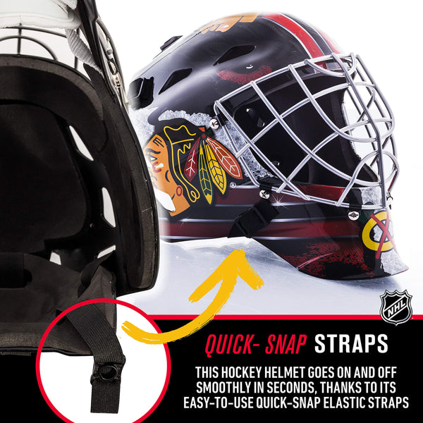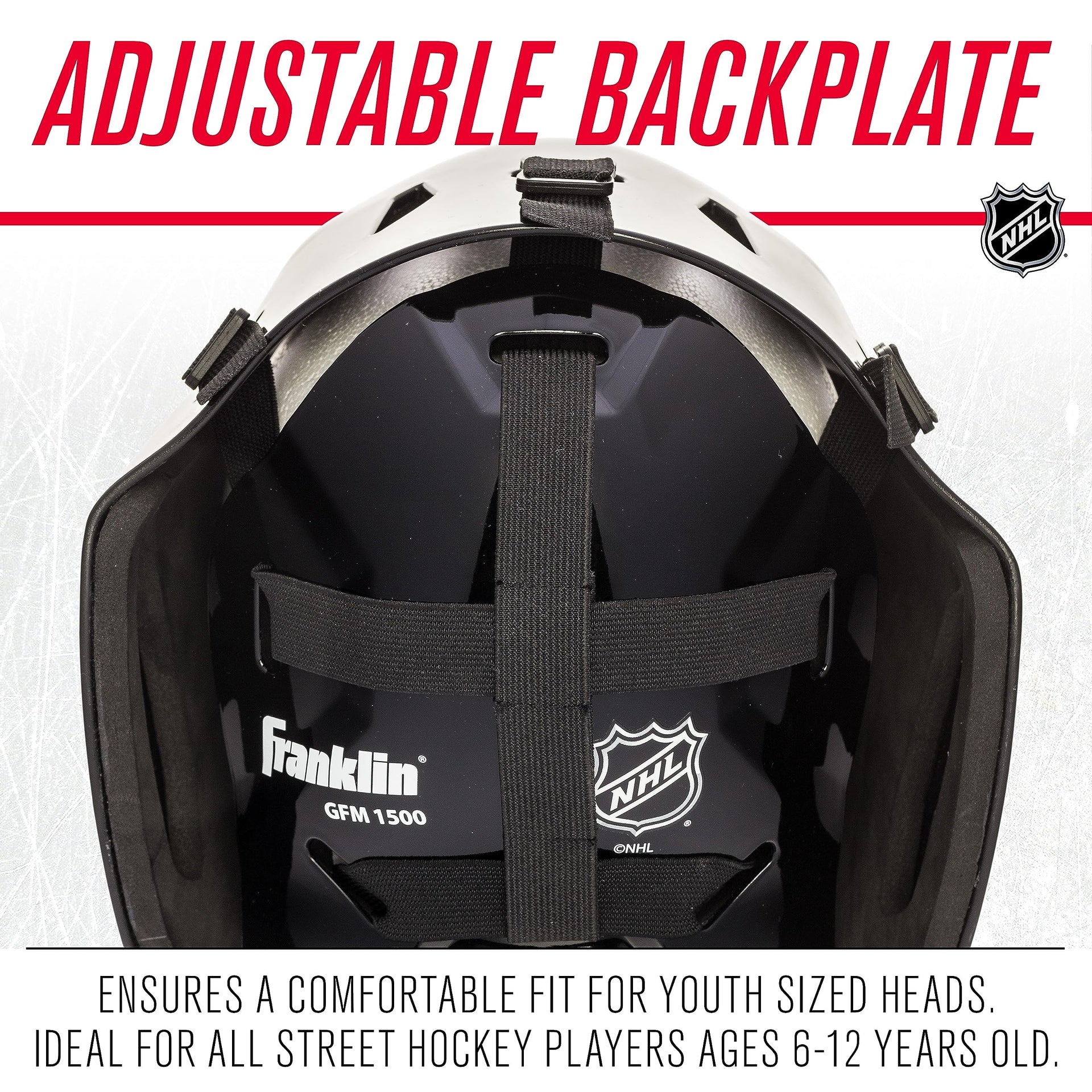 Help your little goalie play like their favorite tender in net with Franklin Sports' GFM 1500 NHL Street Hockey Goalie Masks! These street hockey goalie masks are officially NHL licensed with authentic team logos and colors for all 32 NHL teams, so your player can feel like the pros in the net. The masks come with an adjustable backplate, so they are one-size-fits-all for all youth players. The welded-steel cage and easy-to-use quick snap straps provide maximum performance and protection during the game. The masks are designed with foam for the ultimate fit, feel and comfort. These masks are not HECC/CSA-certified and are only made for street-hockey play with a 2 ? ball. They are not certified for ice hockey or any other type of puck play. So help your youth hockey player feel like a real pro between the pipes today with a GFM 1500 NHL Street Hockey Goalie Mask from Franklin Sports!