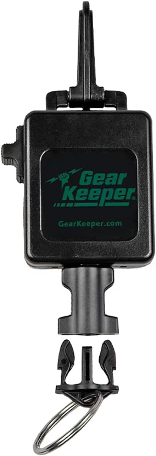 Landing net retractor snap clip Mount, RT3-0012. Locking mechanism secures net when you're walking through trees and brush. Nylon line with Kevlar core. Stainless steel spring and hardware. 80 lbs. Breaking strength. D-ring for attachment. 12 oz. Force/ 42'' Extension.