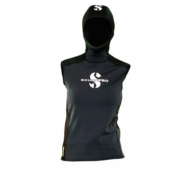 - Q: What is the material of the SCUBAPRO Women's 1mm Hybrid Hooded Diving Vest? A: The vest is made from smooth-skin 1mm X-Foam neoprene in the torso area combined with high-stretch nylon material.