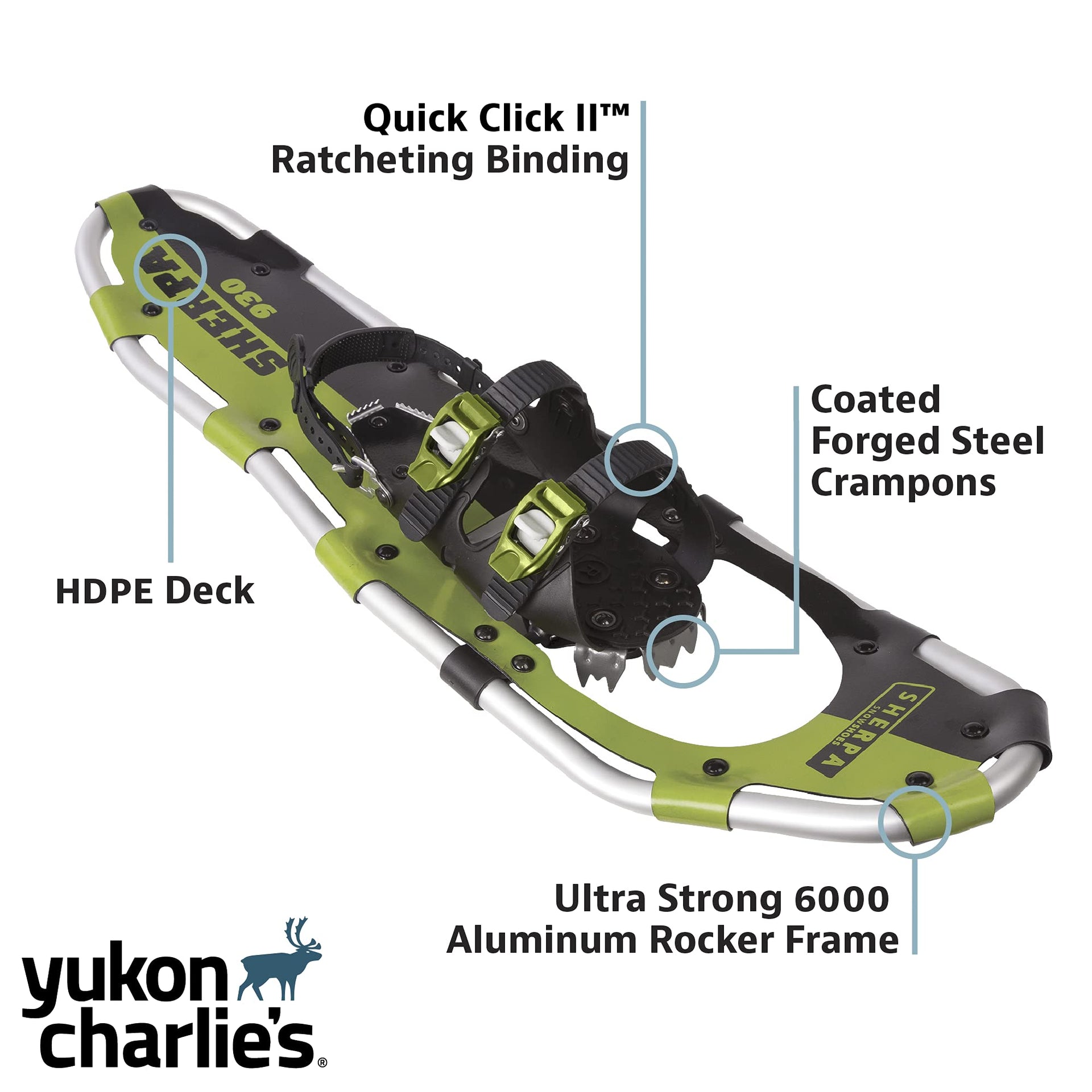 The best snowshoes for beginners, our Sherpa series is designed to deliver confidence and ease. Featuring user-friendly designs like our Quik Clik II ratcheting binding and a Rapid-Lite Flex heel strap, these will get you in and out of the shoe in seconds. At the same time, our ultra-durable HDPE decking and coated hardened steel crampons help you grip the snow and provide secure footing. Built with beginners in mind, this snowshoe is a perfect option for anyone looking to start snowshoeing for the first time. You'll never have to worry about frustrating devices-only having fun.