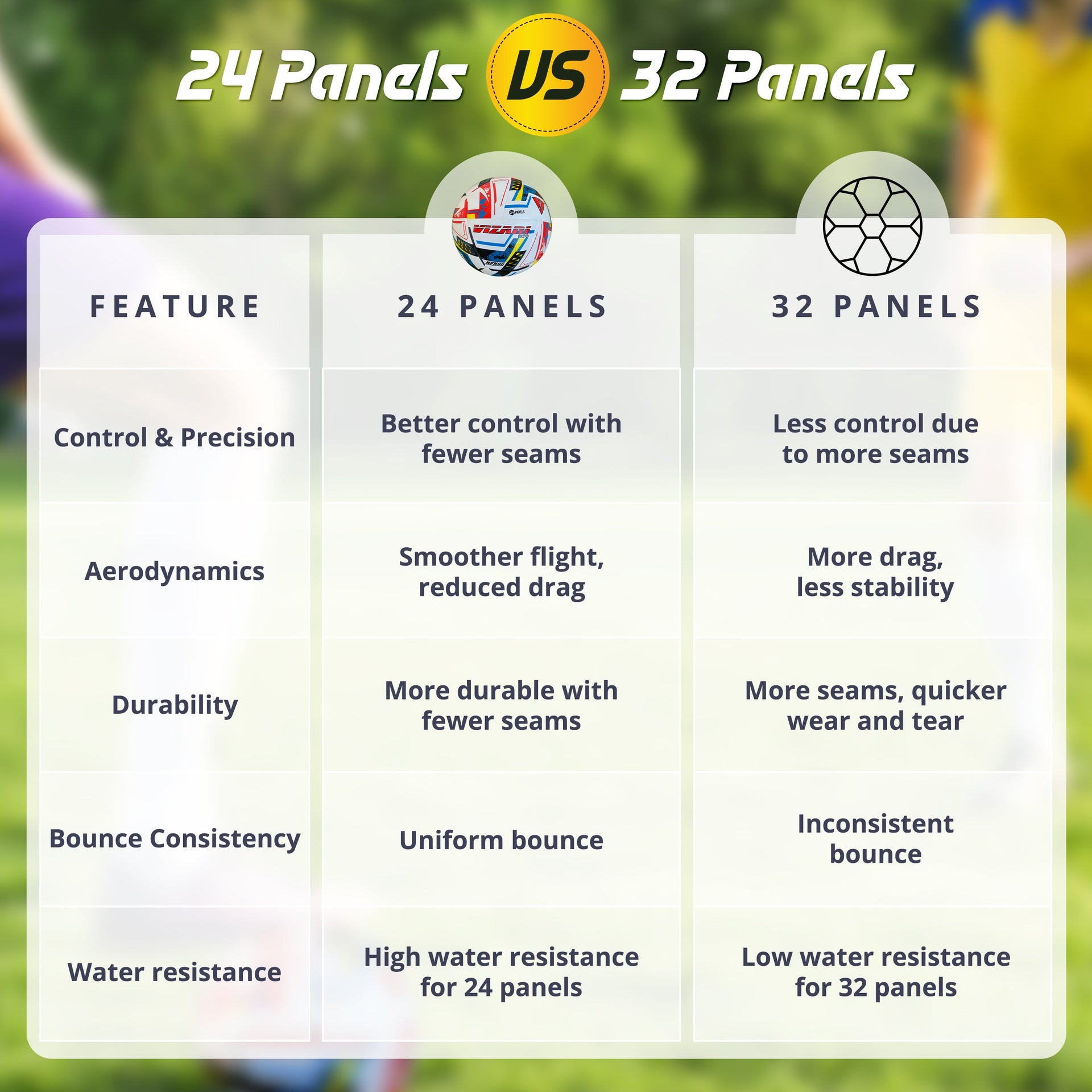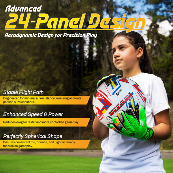A: The ball features a 24-panel construction for consistent shape, superior stability, and enhanced control during play.