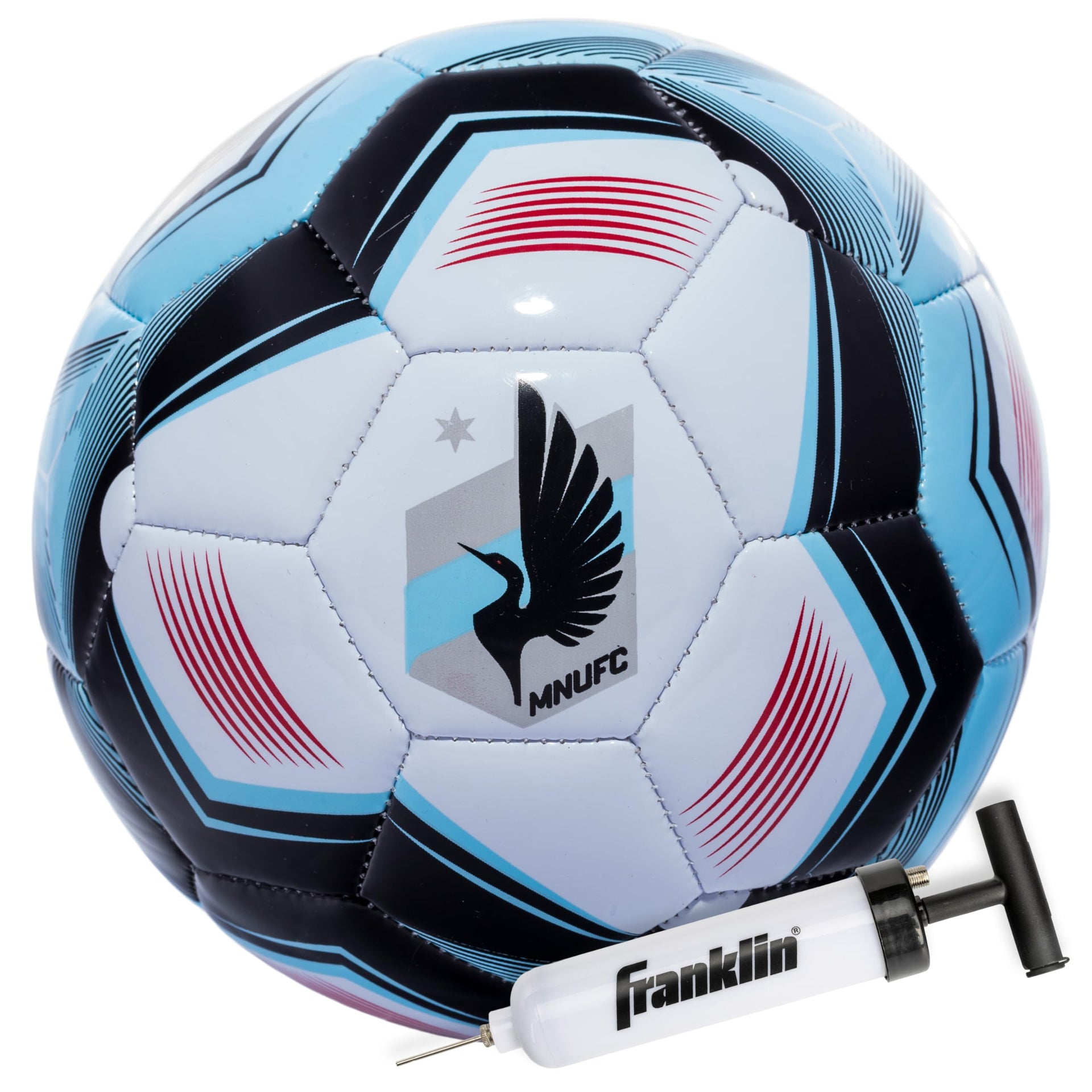 Play ''the beautiful game'' with Franklin's MLS DC United soccer balls made to official size 5 and weight specifications in a traditional 32 panel design for classic aerodynamic flight and control. These officially licensed team logo soccer balls feature the exciting team logo graphics that fans will love. The high gloss glossy cover offers excellent abrasion resistance. The foam cushioning system provides a soft touch for superior control when passing and shooting just like the pros. The long-lasting air retention Butyl bladder ensures consistency through the match. The ball is designed for training, scrimmages, tournament play or collect and display your favorite player autographs. An inflation pump is included so that you can inflate the ball and play right away.