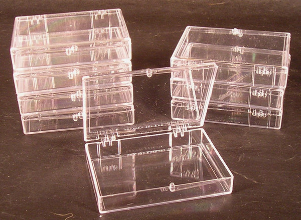 These plastic hinged card storage boxes are of the highest quality, and made in the United States of America! They are designed to hold 35 standard-sized trading cards (2.5'' by 3.5''). Their inside height dimension is just under 5/8 inch. They feature four-ball hinges for added strength, and an extra-tight snap closure design so they won't open up accidentally. They are also quite suitable for the storage of beads, craft supplies, fasteners, fishing gear, small parts and the like.