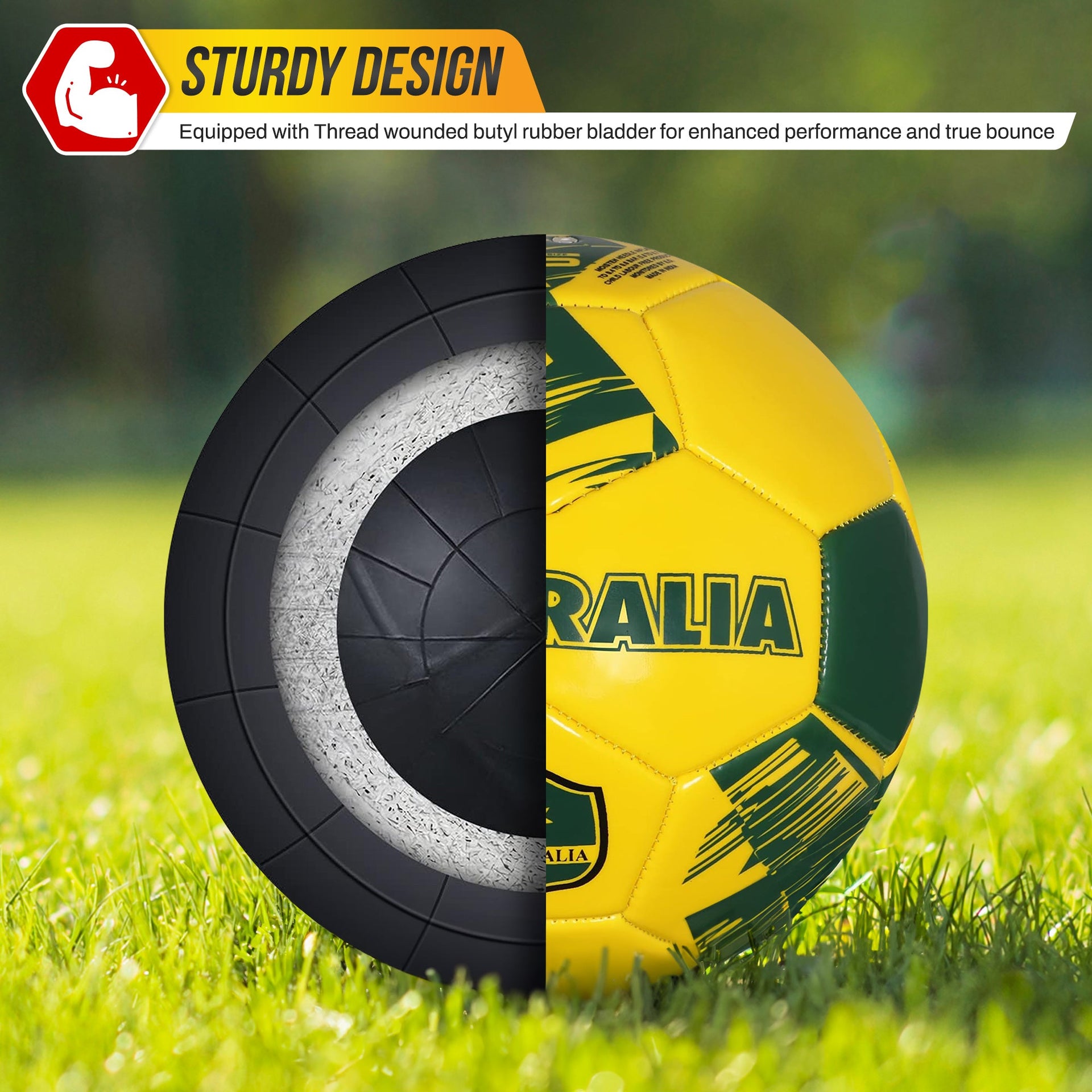 Patriotism in Every Kick- Embrace the pride of playing with a touch of patriotism! The National Team Soccer Balls feature an official Australia logo, symbolizing your love for the game and your nation. With this unique addition, these soccer balls become more than just equipment?they become a representation of your dedication to the sport and your country. Show your spirit with every kick and let your passion shine on the field.