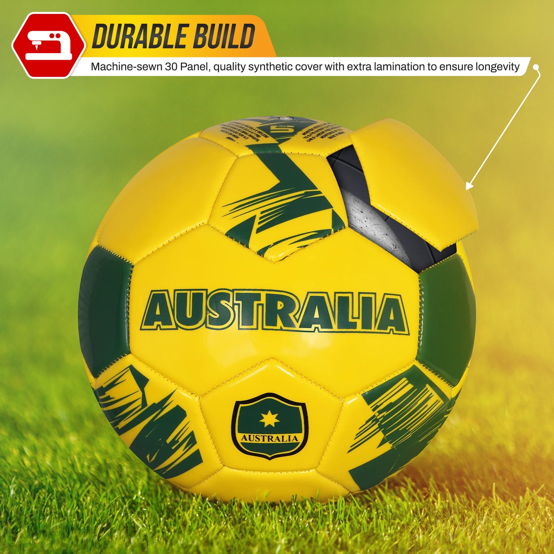 Experience unmatched durability and responsiveness with the National Team Soccer Balls/Country Ball - Australia Yellow by Vizari. Precision construction, extended air retention, and vibrant colors make it the ideal choice for all ages and skill levels. Elevate your game today!