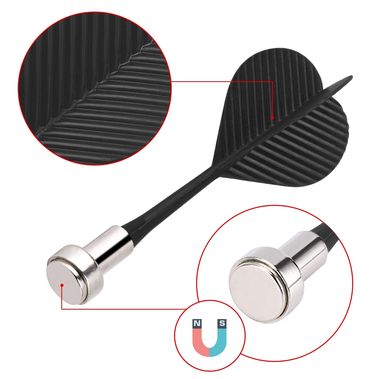 Accmor Magnetic Darts, Safe Magnetic Darts for Magnet Dartboard, Safe Darts for Children, 24 pcs Magnetic Darts Feature: : 1. These darts with magnetic tip , replace the usual sharp tips, safe for younger players and wont harm walls. : 2. Powerful magnetism makes the dart hits the dart board perfectly and not easy to fall off. : 3. Good replacements or spare ones for dart game, designed to use with magnetic dartboards and the darts attach themselves accurately. : 4. We focus on product quality ,make it very durable . : 5. Great for all skill levels darts player. : 6. These dart replacement parts are great for offices, parties, homes, community centers, game rooms, etc., good tool to relax yourself and improve relationships between you and your family or friends; They are also nice gifts to kids. :: Specifications: Material: plastic and magnet Color: red, green, blue and yellow Size: 8.2 cm/ 3.23 inch (whole length), 3 cm/ 1.18 inch (wing width) Package contents: 6 x Red magnetic darts 6 x White magnetic darts 6 x Black magnetic darts 6 x Blue magnetic darts