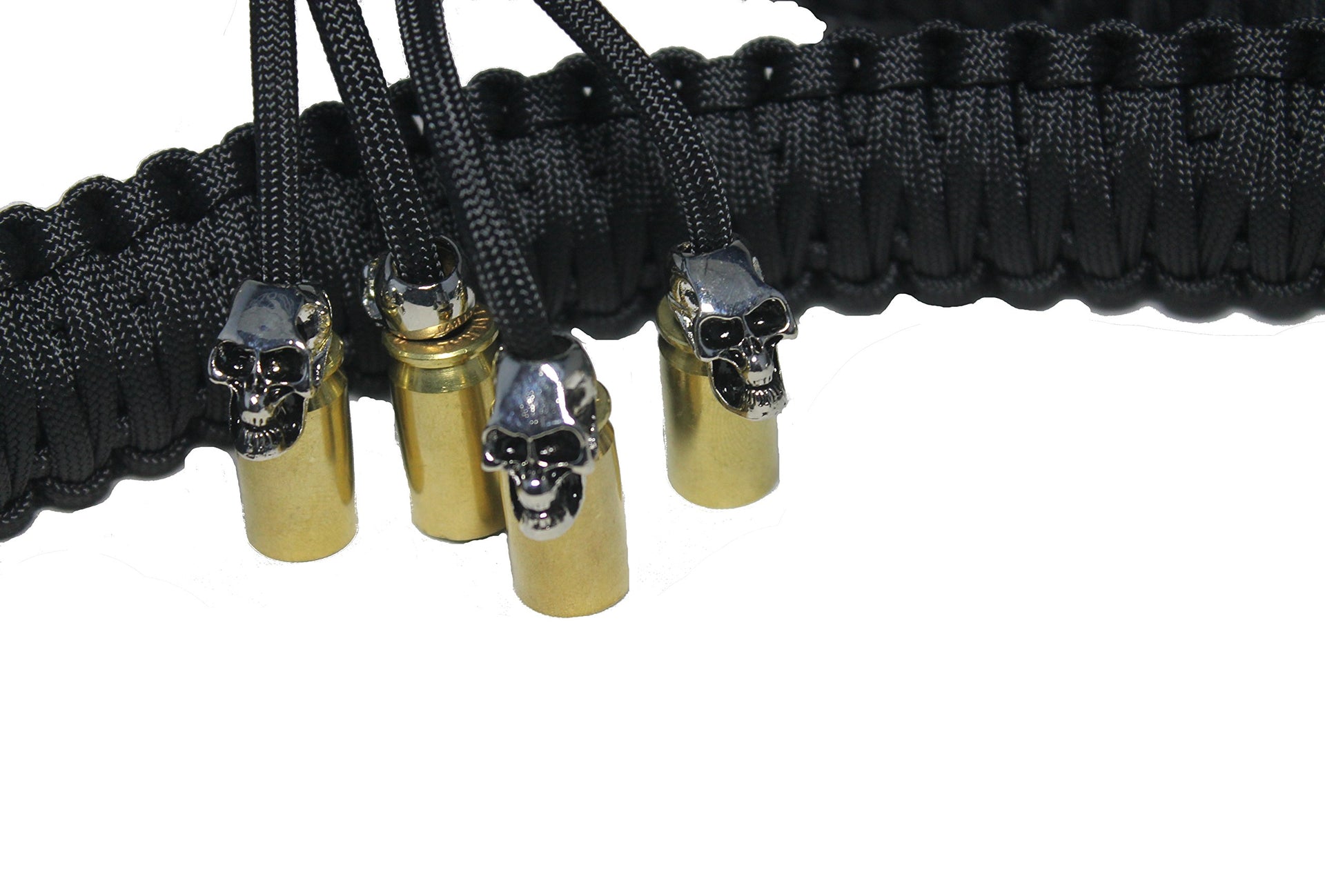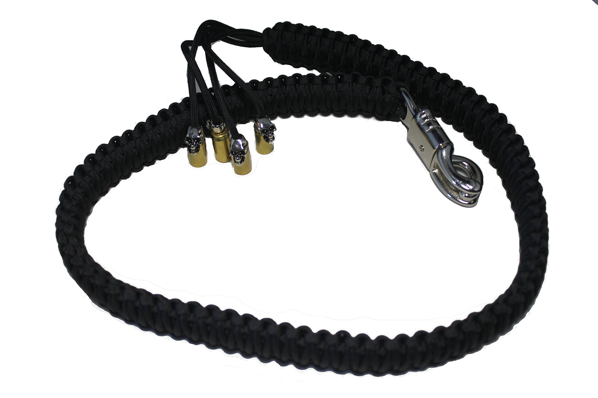 Biker Whip Get Back 36'' All Black King Cobra Double Weave With Silver Punisher Skulls .45 Cal Casing