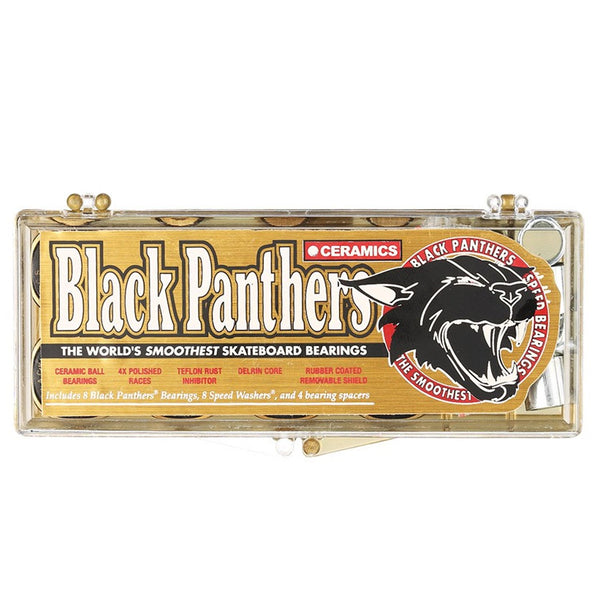- Q: How many bearings come in a pack of Black Panther Ceramic Bearings? A: Each pack includes 8 Black Panther ceramic bearings, along with 8 speed washers and 4 bearing spacers.
