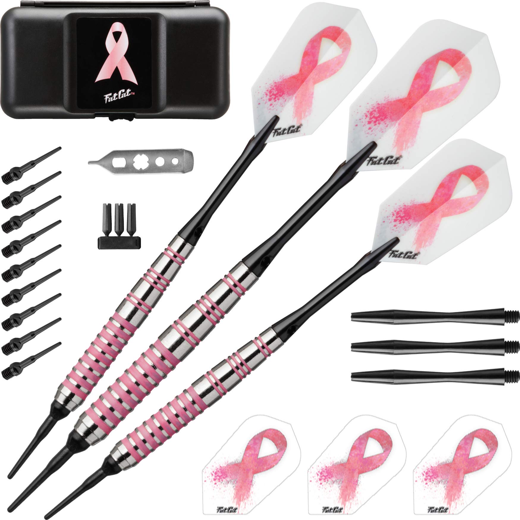 - Q: Does a portion of the proceeds go to charity? A: Yes, GLD Products, the manufacturer, donates a portion of the proceeds from the Fat Cat Pink Lady Soft Tip Darts to breast cancer research, supporting the fight against breast cancer.