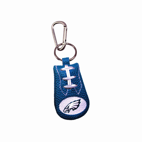 - Q: What material is the Philadelphia Eagles Team Color NFL Football Keychain made from? A: The keychain is made from genuine leather, providing durability and a premium feel.