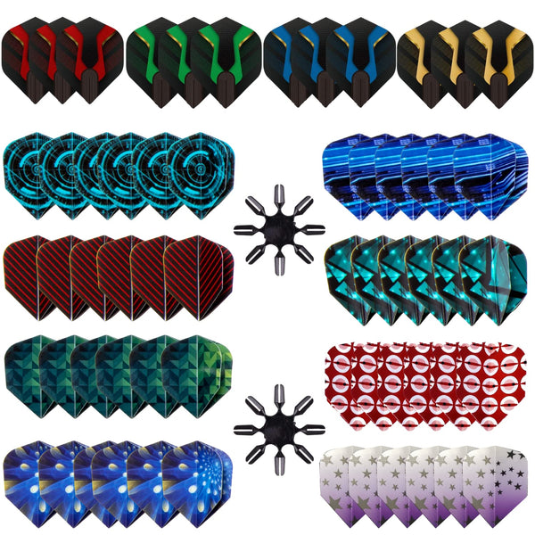 - Q: How many dart flights are included in the package? A: The package includes 60 dart flights featuring 12 unique designs, along with 16 flight savers to enhance the durability of the flights.