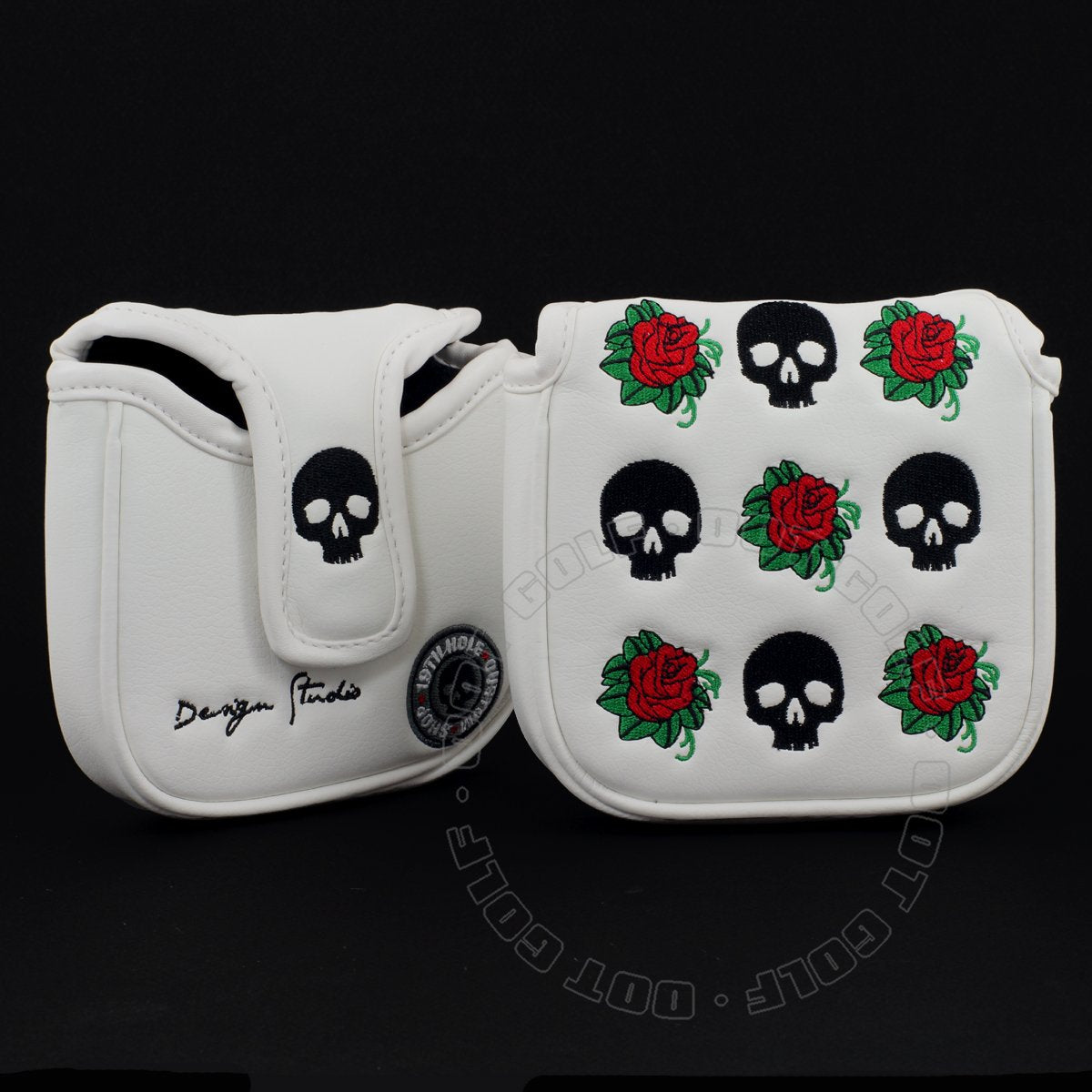 Skull and Rose Putter Headcover for High-MOI Mallet Putter, White. Cover Heel Shaft big size High-MOI mallet putters. Our unique designed headcovers are made with high quality of material, embroidering and stitching. Ultra thick 3-layers (PU leather top, sponge sheet intermediate-layer and velvet lining) cover provides the best way to protect your valuable golf club heads