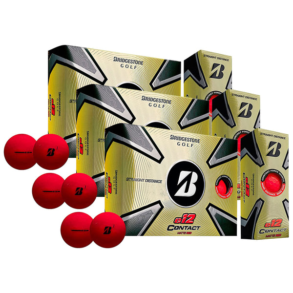 - Q: What colors are available for the e12 Contact Golf Balls? A: The e12 Contact Golf Balls are available in white, matte red, matte green, and matte yellow.