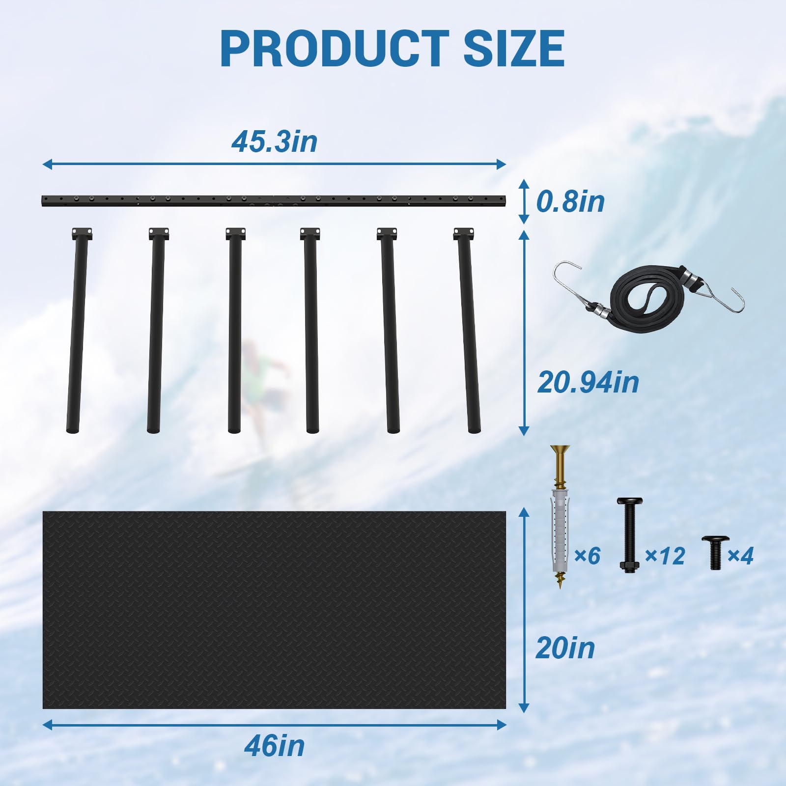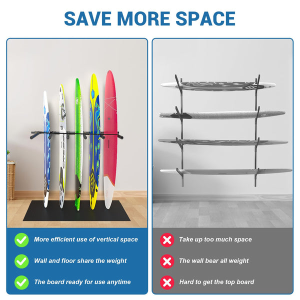 Lxvooee Vertical Surfboard Rack For Wall, Surfboard Wall Mount With Bungee Cord And Rubber Mat, Metal Garage Surfboard Stand Wal