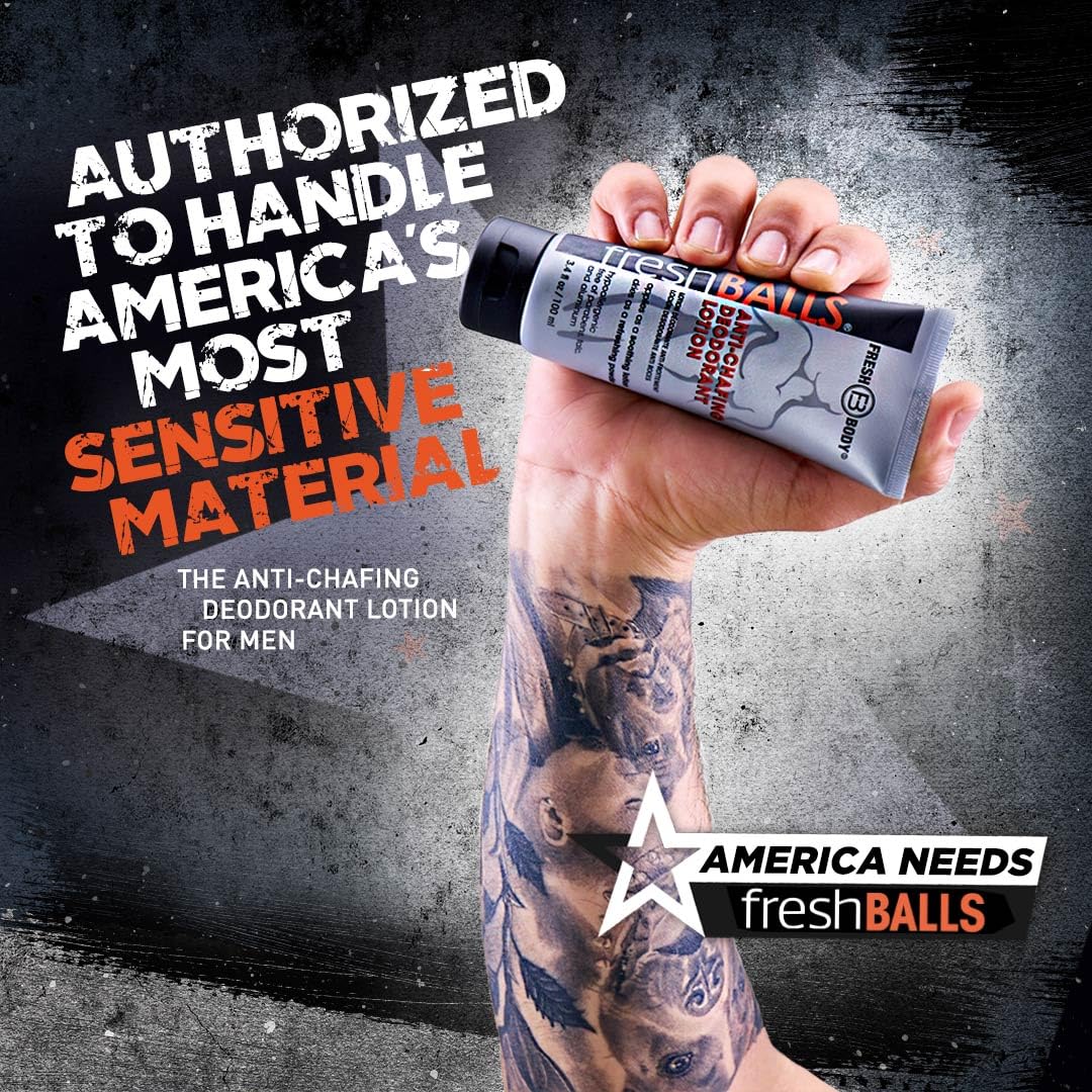 Fresh Body FB Balls Deodorant For Men: Anti Chafing Ball Cream to Powder for Men's Groin, Private Parts | Comfort Lotion is Aluminum-Free & Talc-Free, 3.4 oz