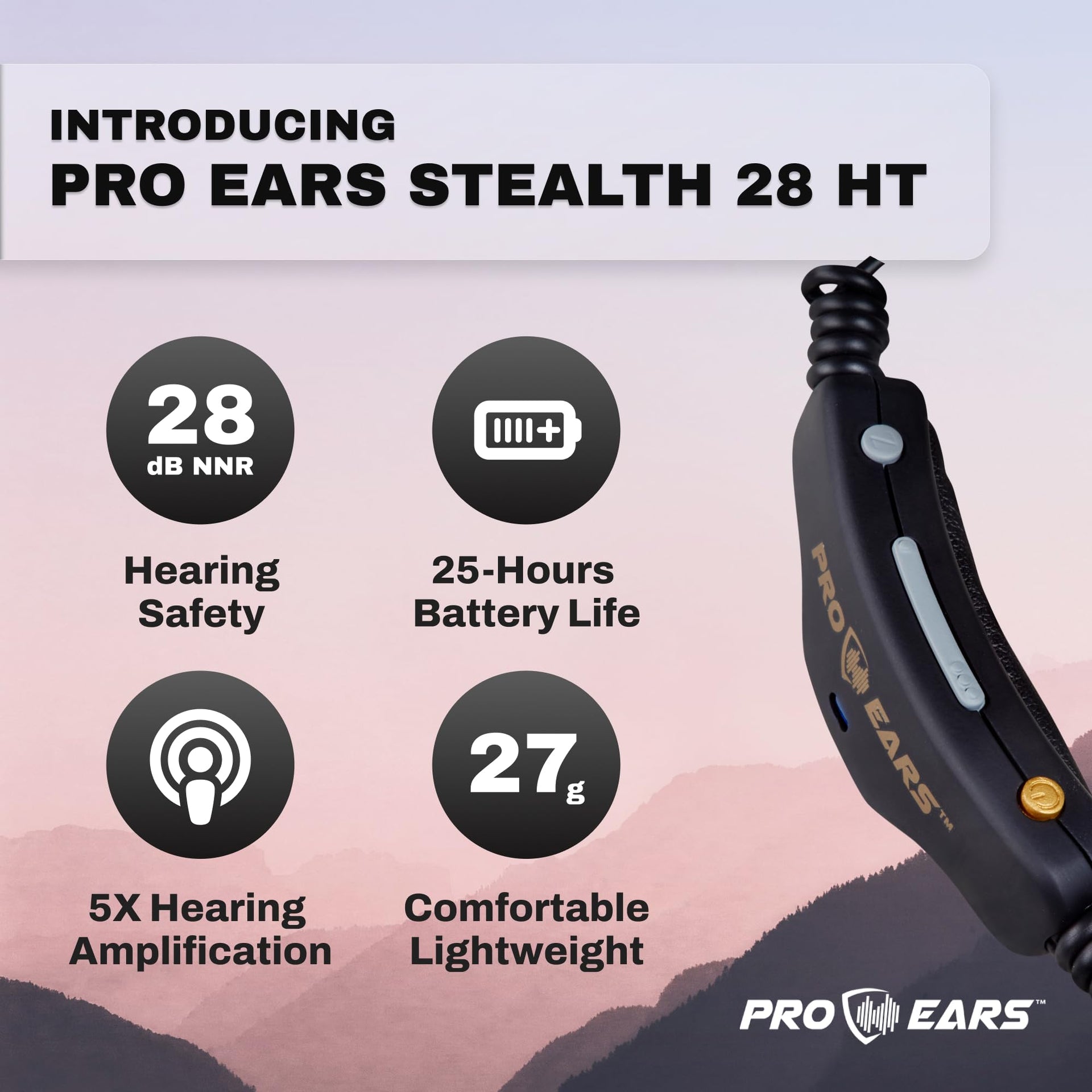 Dive into superior ear protection with the Pro Ears Stealth 28 HTBT, combining elite shooting ear protection with Bluetooth for an unparalleled listening experience. Boasting a 28 dB NRR, it diminishes loud noises while enhancing ambient sounds with Dynamic Level Sound Compression (DLSC) technology. Ideal for shooters who prioritize convenience, the Stealth 28 HTBT offers seamless Bluetooth connectivity for music and calls during activities without compromising safety or sound clarity. The design focuses on comfort; its behind-the-head fit and adjustable coil headband provides a snug, headache-free experience for any head size, and it's compatible with glasses, hats, and various hairstyles. The USB-C Li battery delivers 15 hours of use after a quick charge, supporting all-day wear. A complete accessory kit, including various ear tip sizes and wind filters, ensures a customized and clear listening experience. With the Pro Ears Stealth 28 HTBT, enjoy the ultimate mix of protection, connectivity, and comfort, making it a smart choice for safeguarding your hearing without sacrificing the quality of your outdoor or shooting endeavors.