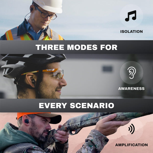 Pro Ears Stealth Elite, 28 dB NRR, IPX6 Waterproof, Bluetooth 5.0 Ear Protection with 3 Modes - Isolation, Awareness, Amplification