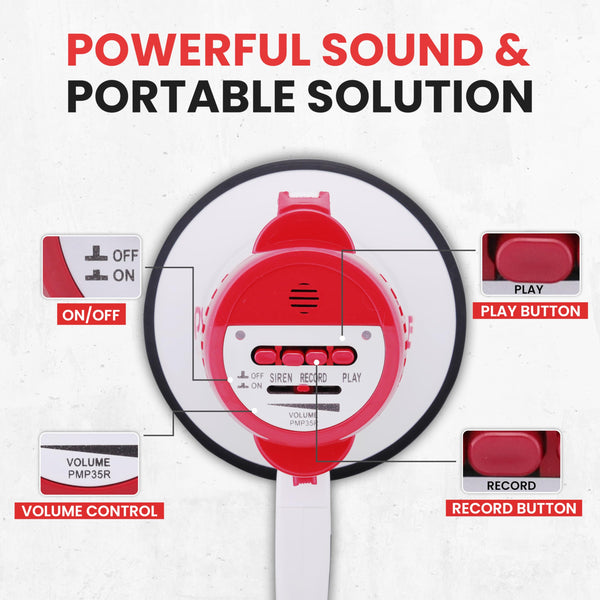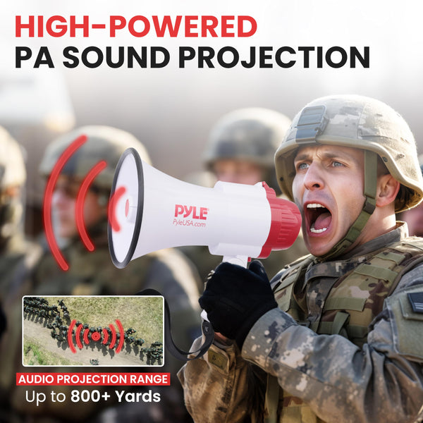 Pyle Megaphone Speaker PA Bullhorn - with Built-in Siren 30 Watt Voice Recorder & 800 Yard Range - Ideal for Football, Soccer, Baseball, Hockey, Basketball, Cheerleading Fans & Coaches - PMP35R