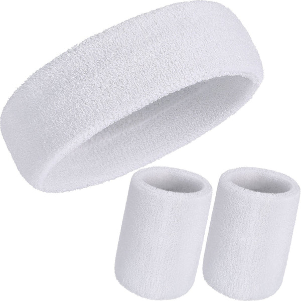 - Q: What is included in the sweatbands set? A: The set includes one sweat headband and two wrist sweatbands.
