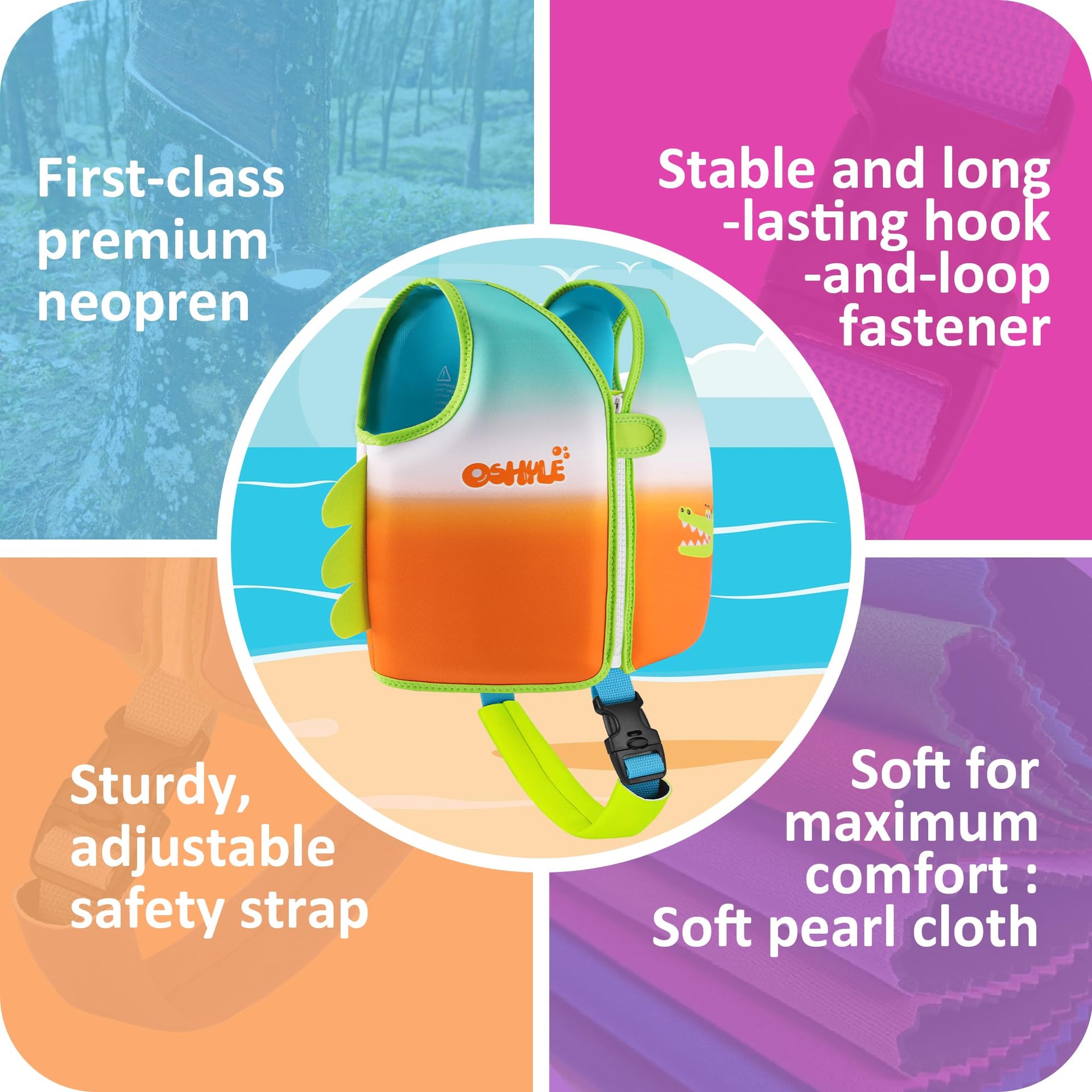 Oshyle Children'S Girls Boys Swimming Vest For Toddlers With Adjustable Safety Straps Age 1-9 (Crocodile, L(6-9))