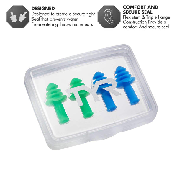 Tyr Ergo Flex Ear Plugs-4Pk Swimming Equipment, Blue/Green, All