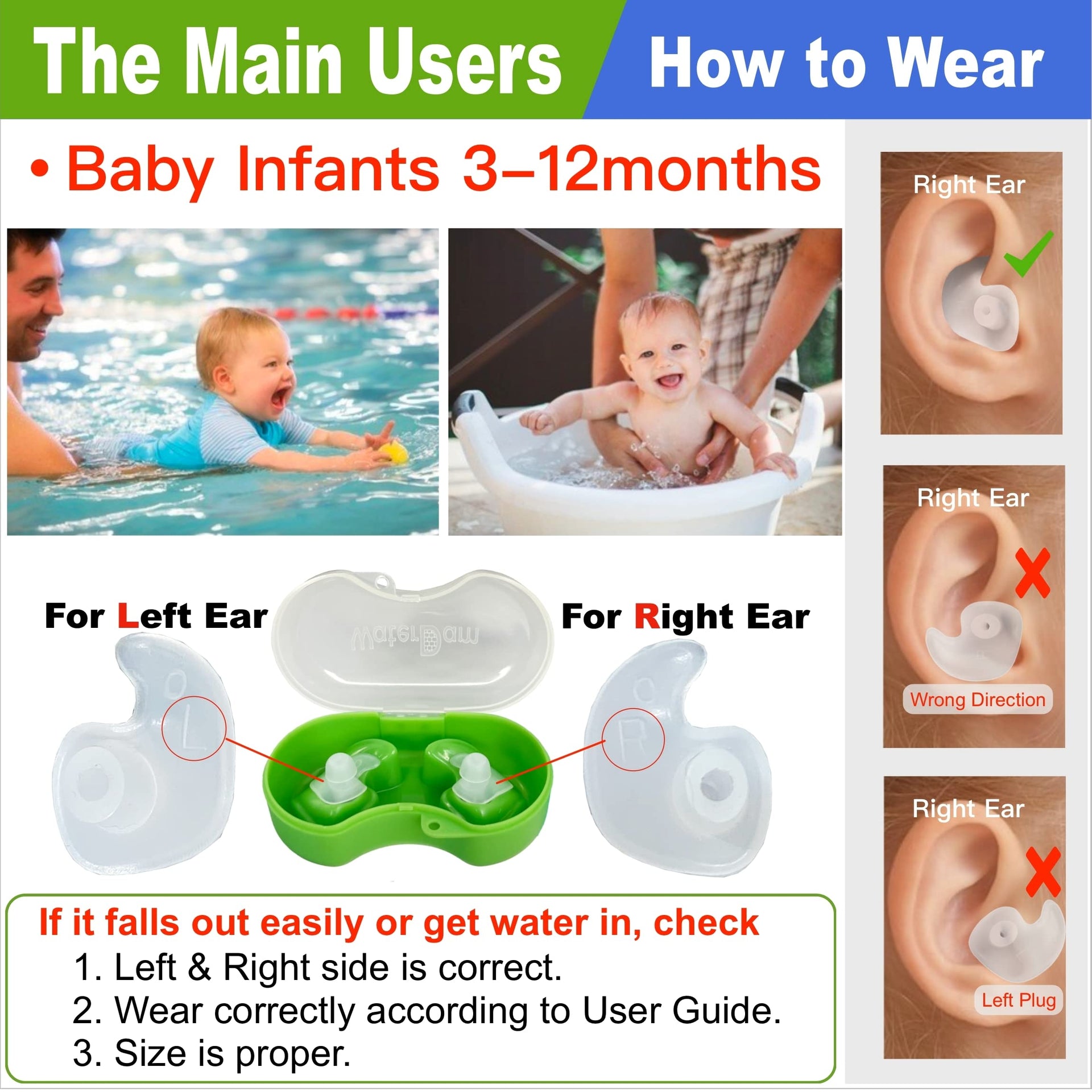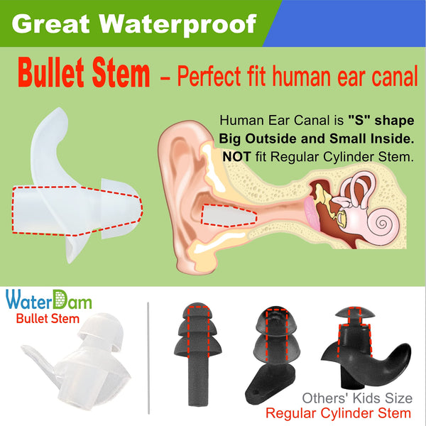 WaterDam provides professional swimming ear plugs for all people at any age classic Series: Size 0: Infant Baby 3-12months Size 1: Toddlers 15-45yr & ExtraSmall Ear women Size 2: Kids 6-14yr and Medium Ear Women Size 3: Medium Ear Men and Large Ear Women&Teens Size 4: Large Ear Men A-Series: Size 1A=08 2A=18 3A=28 WaterDam Swimming Ear Plugs feature great waterproof and superior comfort to wear Perfect choice to prevent swimmers ear and protect ears with tubes Question:can these be worn if eartubes are placed in Answer: For users with ear tube, the most important thing is that the waterproof effect must be good The second is the earplugs wont break or even have parts fall and left in ear canal The last but not the least, the length should not be too long otherwise it will hurt inner ear and be too close to the ear tube Waterdam earplugs have the best waterproof performance among all kinds of earplugs, with the shortest length and the most expensive high-quality flexible silicone material It is impossible to break naturally, so it can be worn under normal conditions If there are other pathological features of the ear canal that require more special care, it is recommended to consult a doctor before wearing it