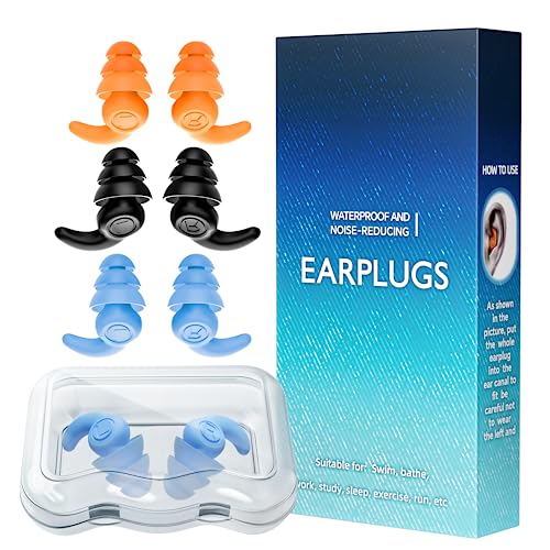 Waterproof Swimming Ear Plugs for Adults, 3 Pairs Reusable Silicone Swimmer Earplugs, Ear Protection for Showering Swimming Bathing Surfing and Other Water Sports